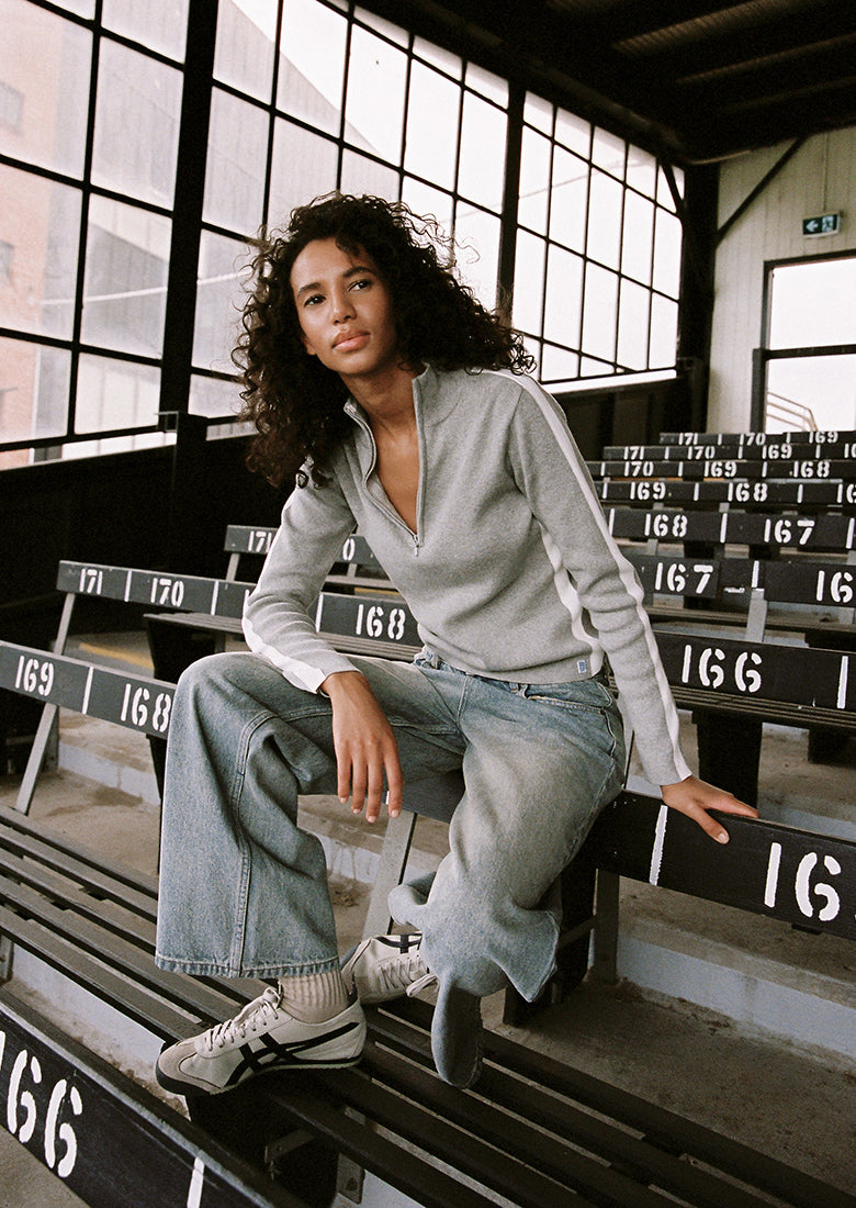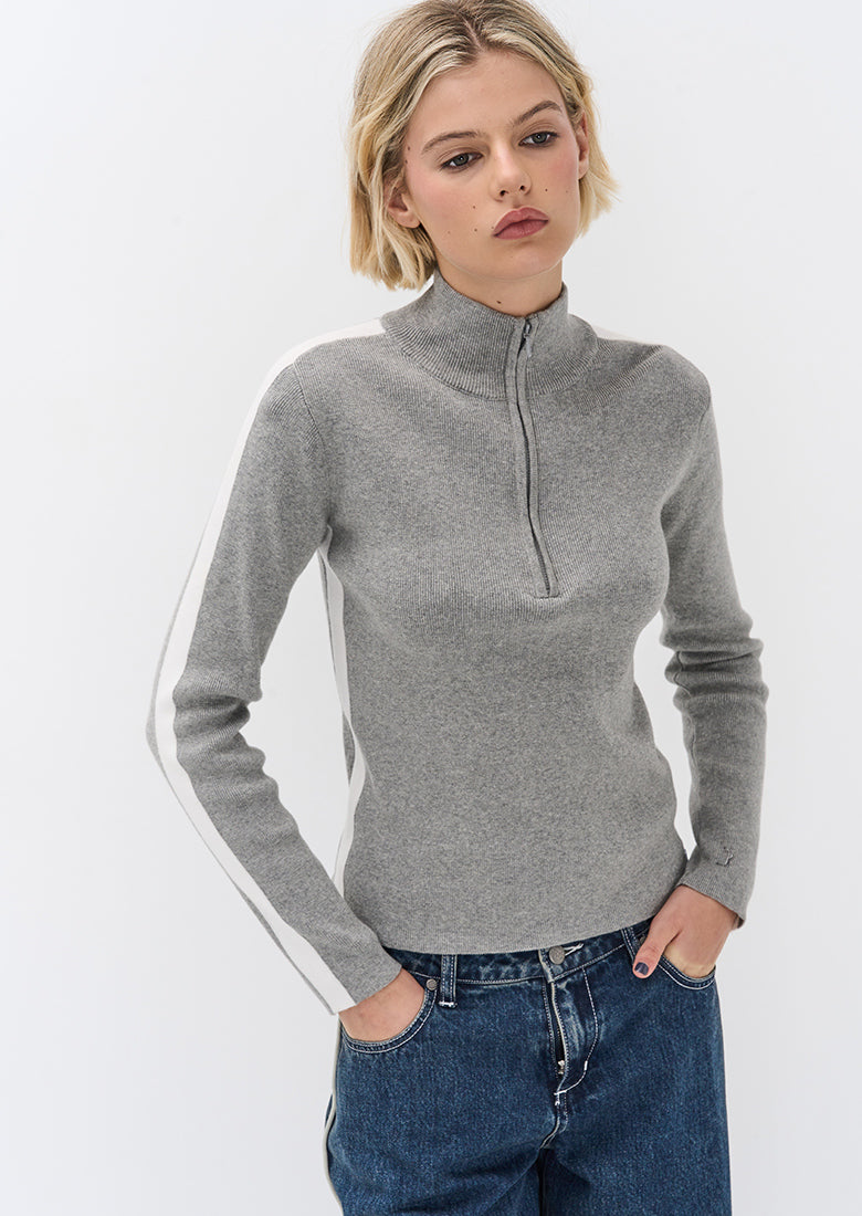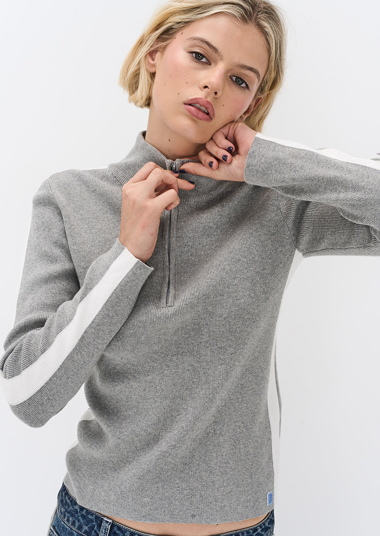 Get cozy with our Bailey Knit Top! Perfect for chilly days, this top will keep you warm and stylish with its unique arm stripe design and half zip. Stay snug and trendy with ease.