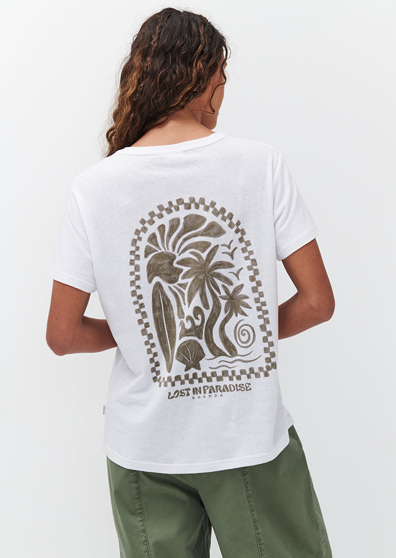 Summer never looked so good! Look Summer-ready in our Beach Tee. Perfect for those days when you want to be stylish and comfortable, this relaxed-fit tee features a small chest print and an eye-catching full back print. Get ready to soak up the sun!