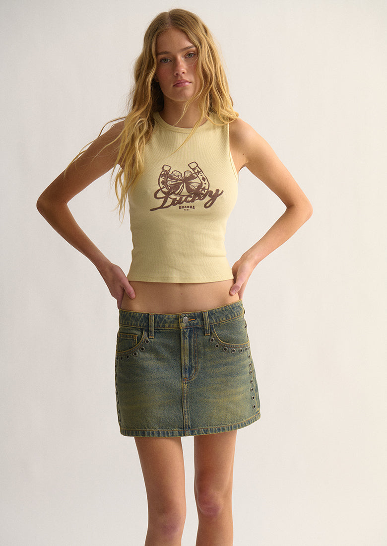 The Bella Singlet is your new go-to this summer! This fitted, cropped singlet has a modern high neckline and a soft, ribbed feel that fits like a dream. With a cool inhouse designed screen print, it’s made from a stretchy cotton blend for all-day comfort and style.