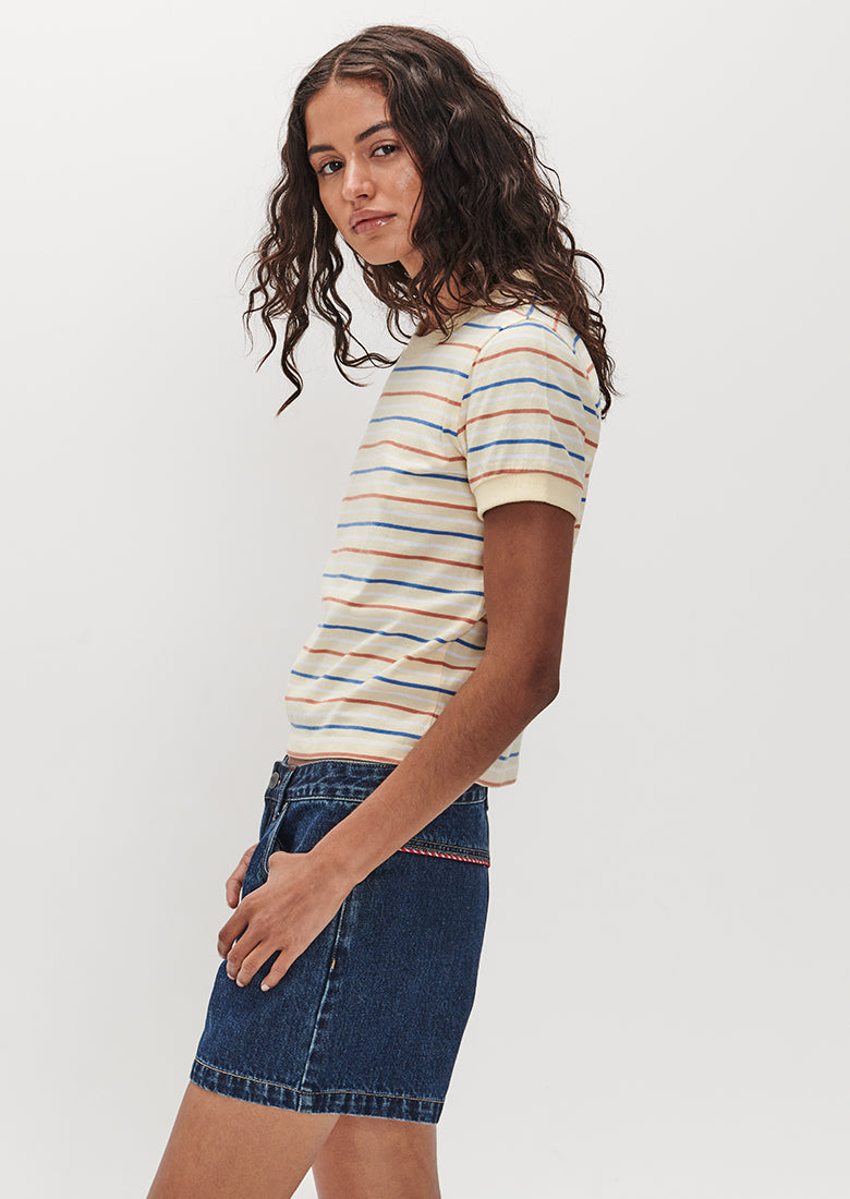 Look cute and casual with the Bianca Tee - a vintage-inspired striped design crafted with a cotton/hemp blend fabric. It features a slightly cropped regular fit plus ribbed neckline and sleeve hems for subtle contrast adding to the 70s style!