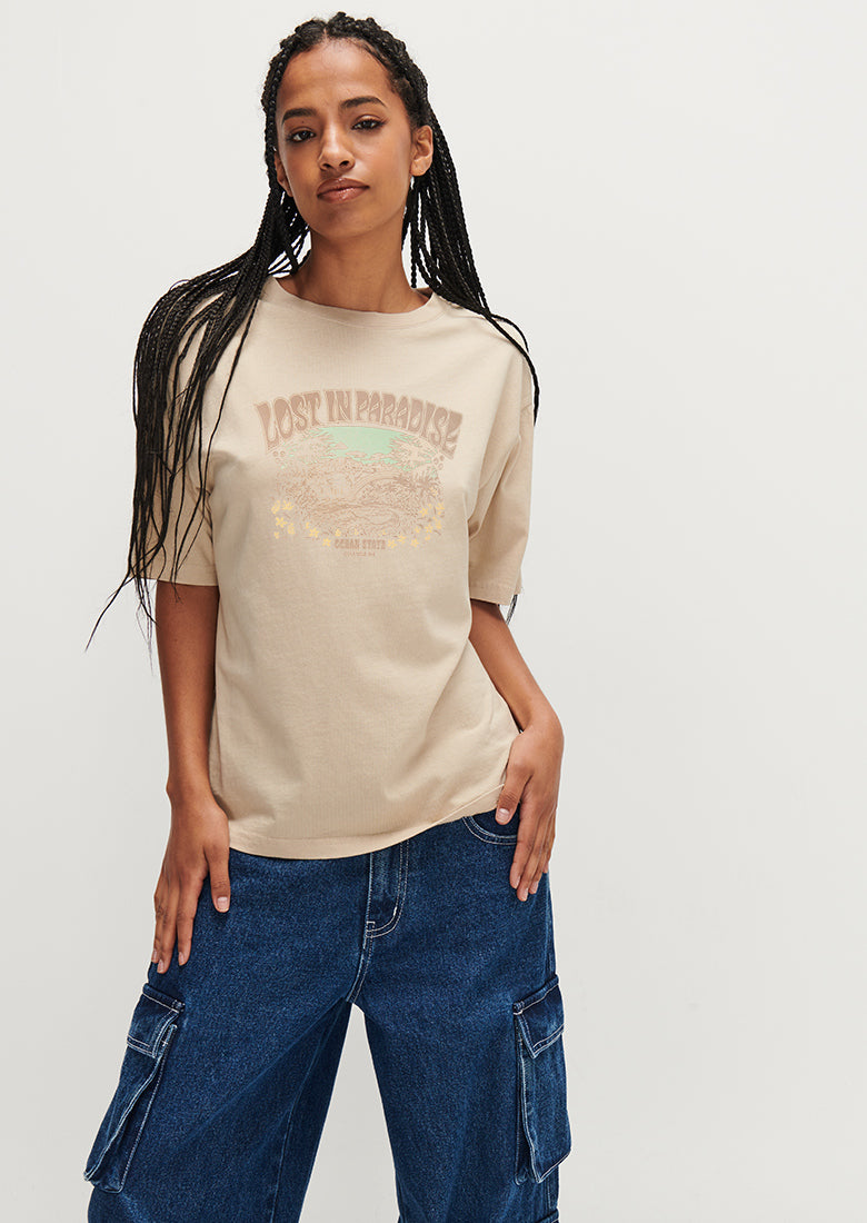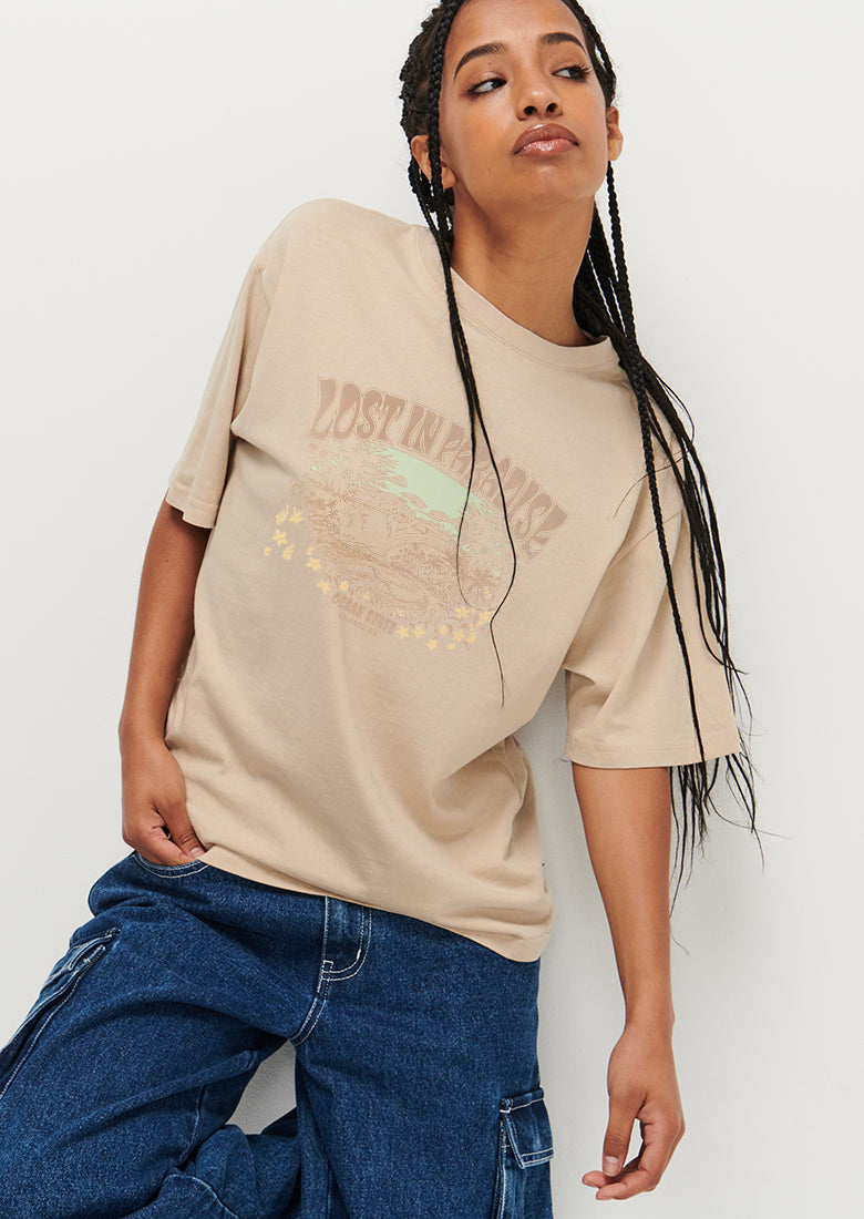 Oh so funky, take a trip in the Billie tee and it's fresh off the press graphic print! Crafted in the softest, vintage feel fabric, this relaxed fit tee is the ideal summer staple.