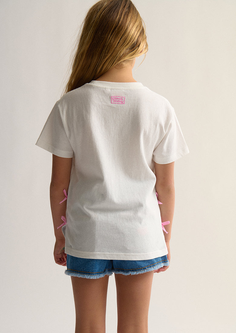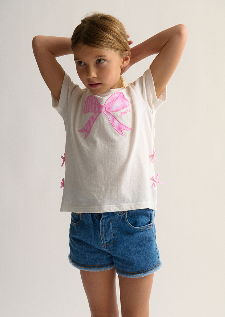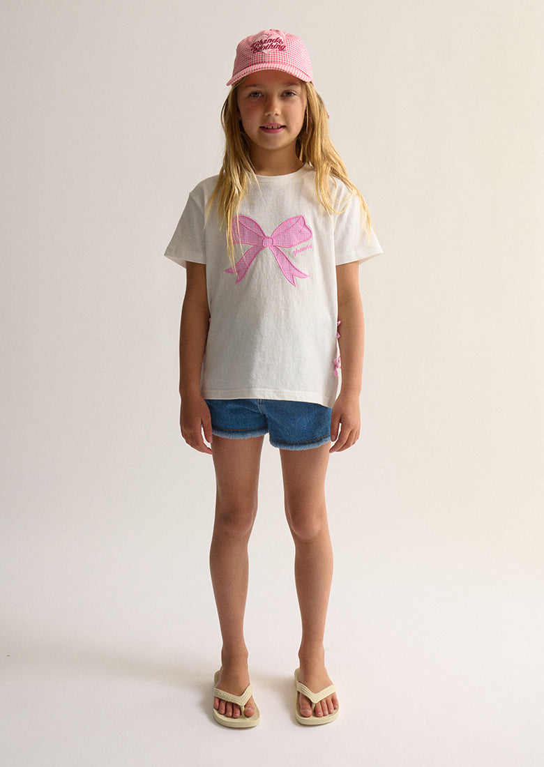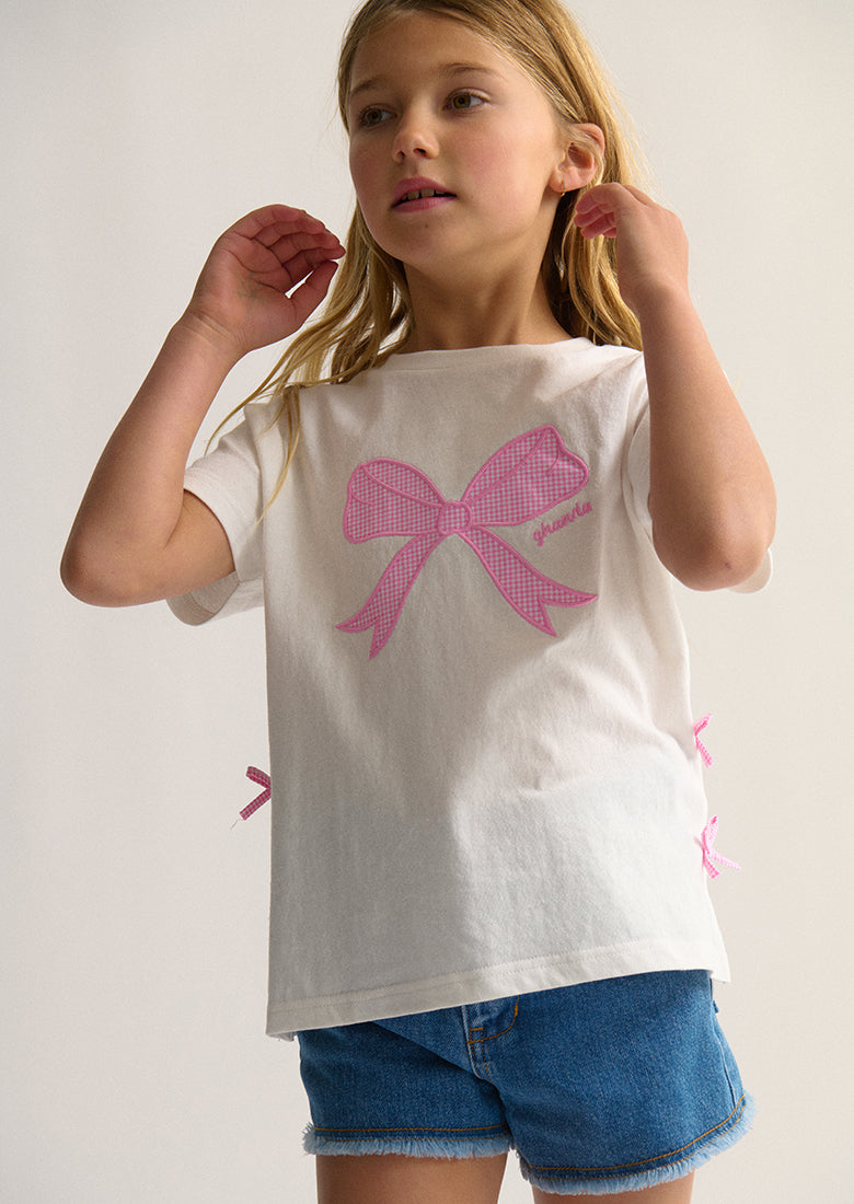 Our Bow Tee is cutness overload! Made with super soft 100% cotton, it features adorable contrast bows, side splits and playful gingham bow print - your little one will be the coolest kid on the playground!