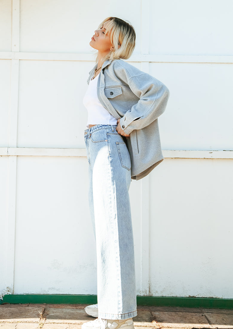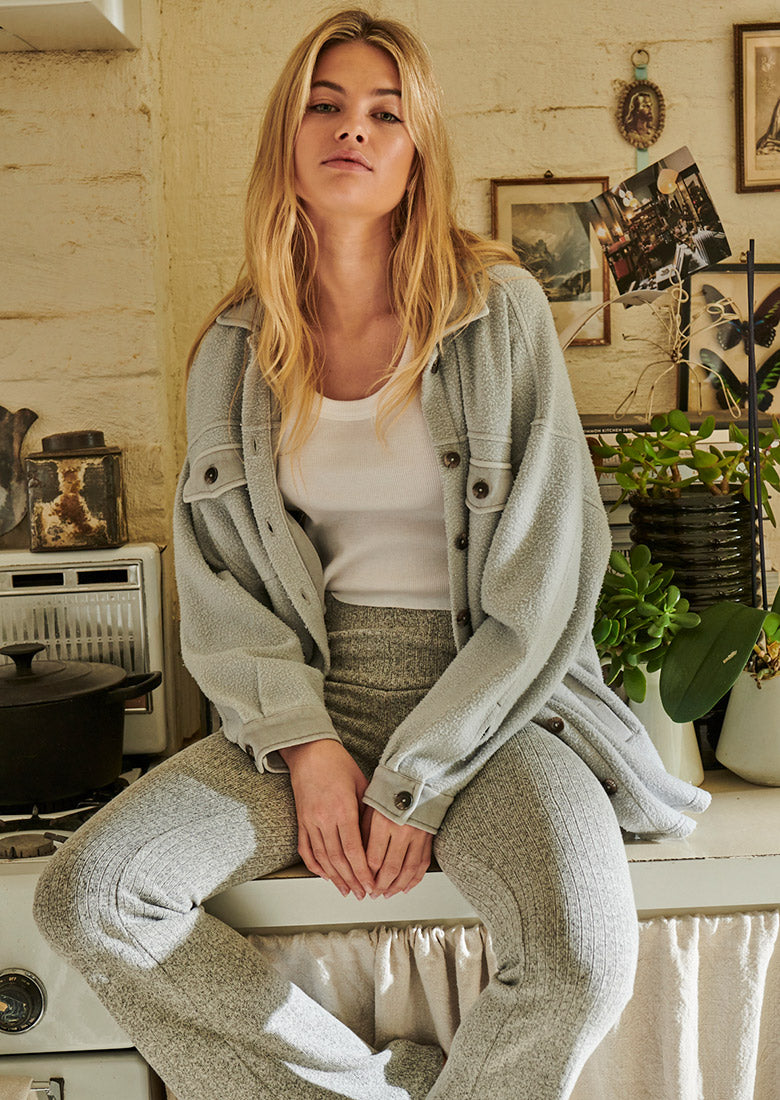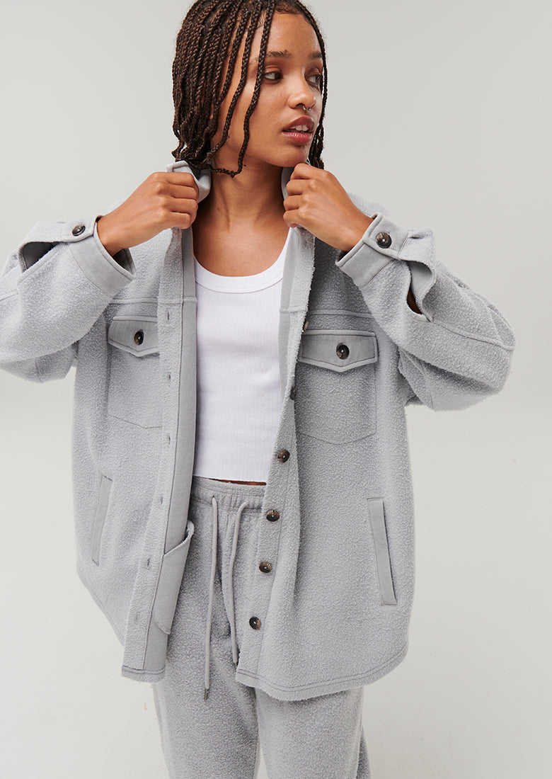 Check out the Cascade Jacket! Relaxed shirt silhouette, crafted from a reverse fleece fabric. Warm and easy to layer - style me with a cropped singlet, and the matching trackies for your edgy streetwear look.