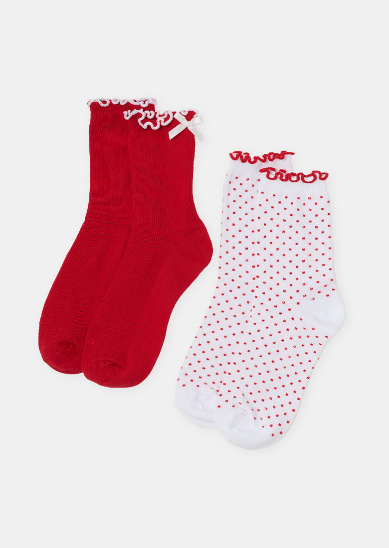 The cutest socks you'll wear to date! This two pack of socks features polka dots and an adorable bow, with lettuce frill hem on both. Perfect for adding a sweet touch to any outfit!