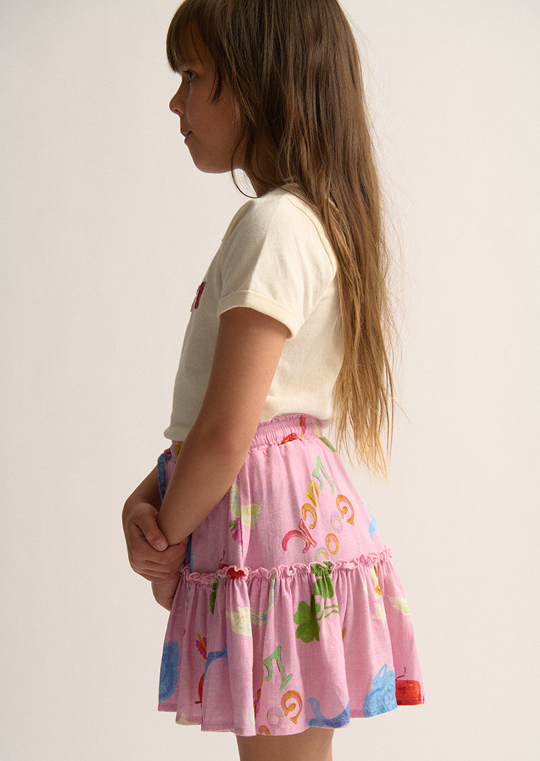 You'll love our Coco Skirt! Super sweet elasticated tiered skirt in our Pink Good Luck. Perfect for twirling and dancing all day long!