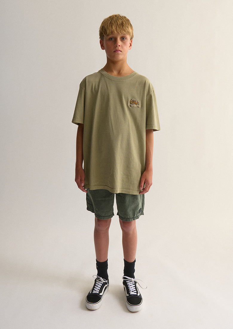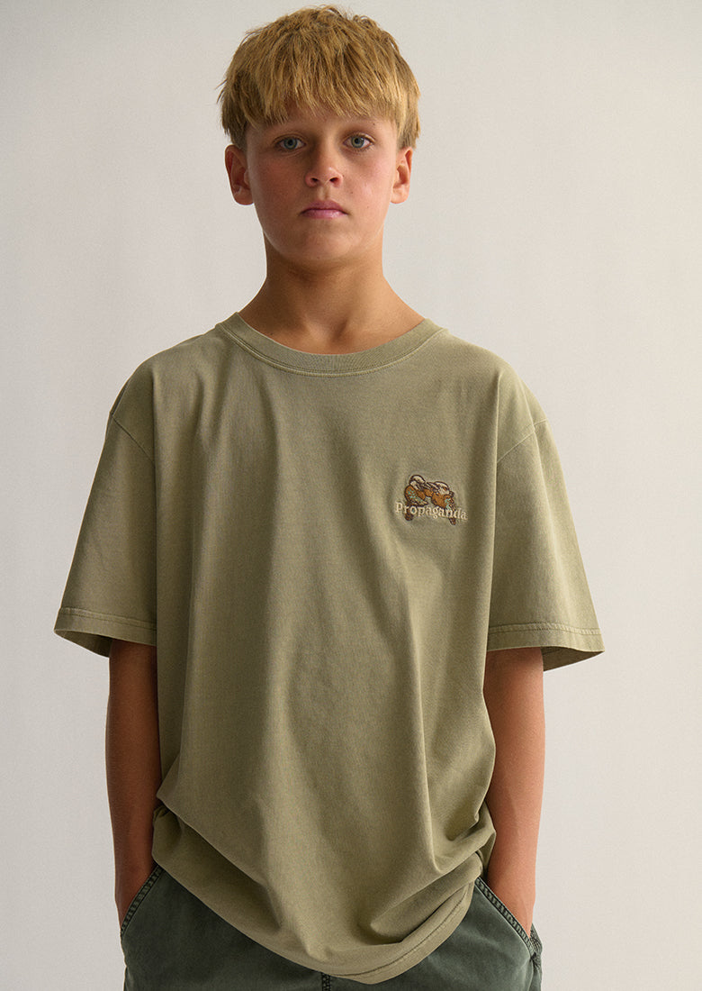 The Common Tee is a classic. Our signature cut tee is your new go-to for everyday wear, featuring exclusive Ghanda artwork embroidered on the front. With a relaxed, retro fit and soft cotton feel, it’s made for beach hangs, park days, and everything in between.