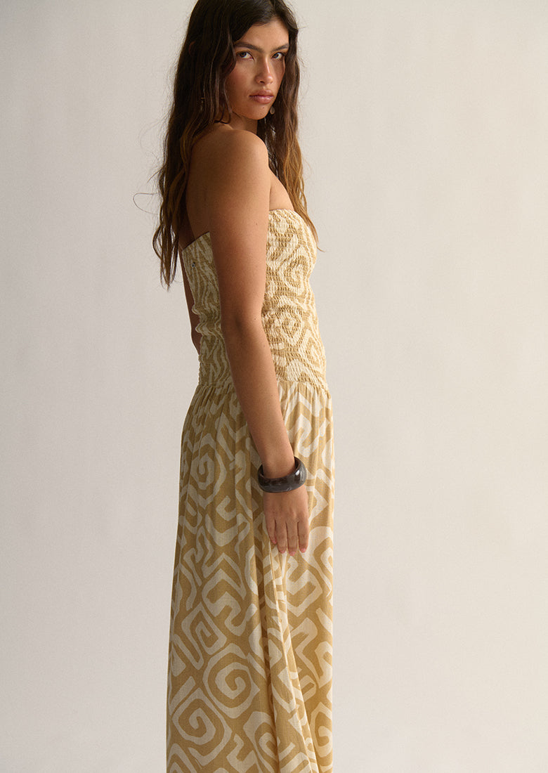 Where will the Coral Maxi Dress take you? Made for sun-drenched days and impromptu getaways, this dress features a secure strapless fit with a full shirred body. The unique drop waist provides a relaxed feel, while the long, flowy skirt moves with the breeze. Crafted from a lightweight linen blend, this dress is your new go-to for capturing that chic, coastal vibe.