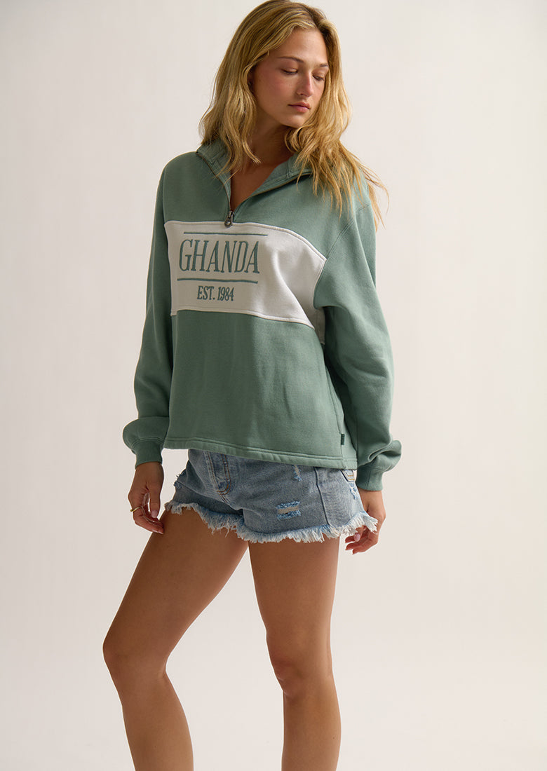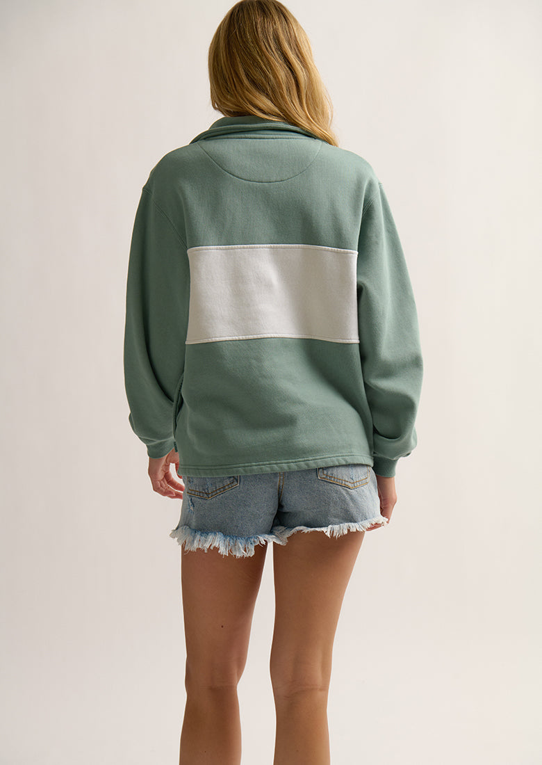 Introducing our Current Quarter Zip - your new everyday essential. Perfect for any occasion, this fun addition to your closet is a must-have. Featuring a contrast panel design in a relaxed fit with a quarter zip and collar.