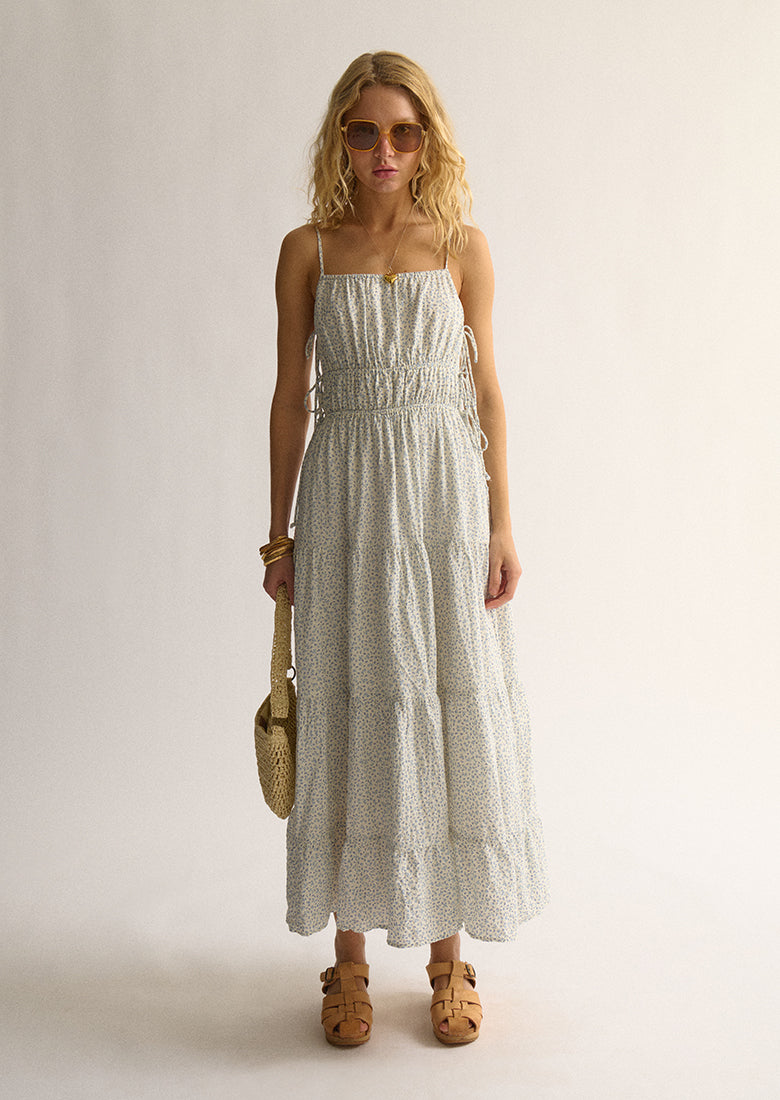 Step out in sunshine-ready style with our Demi Maxi Dress! The flowy, tiered design and thin, adjustable straps create an effortless silhouette, while the elasticated waist and underbust ensure a comfortable fit. A sweet keyhole with side ties adds a flirty detail, and the full lining makes it a dream to wear. This dress is all about simple, sweet charm.