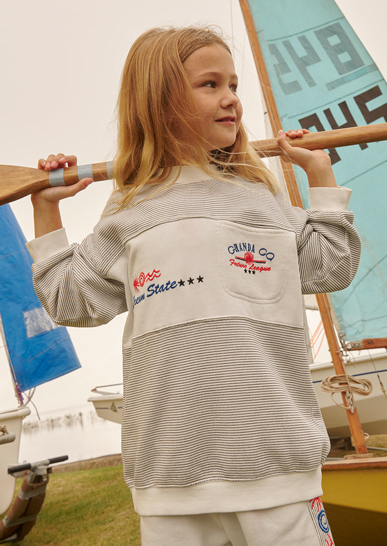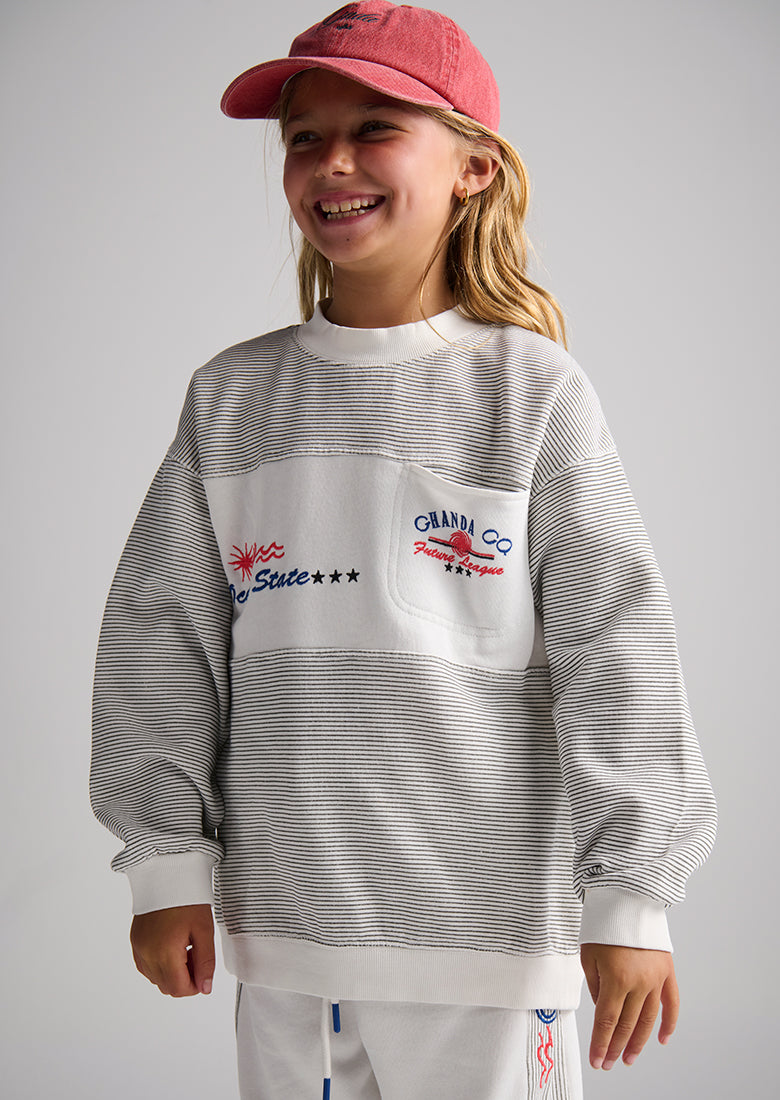 Embrace classic cool with a modern twist! Our Future League Crew features a classic crew neckline, comfy ribbed hems and cuffs keep everything snug, while the cool contrast panel and detailed chest embroidery give it that awesome, timeless look. Don't forget to grab the matching Future League Trackies to complete your look!