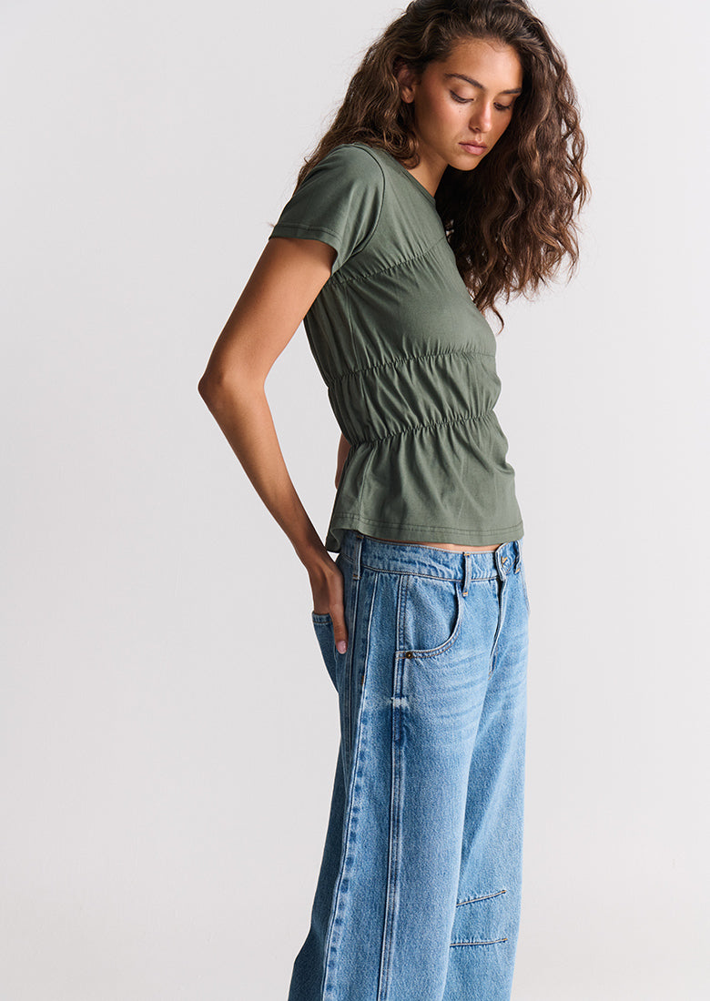 The Gathered Tee takes a classic silhouette and gives it a modern twist with an asymmetrical ruched design. Made from soft 100% cotton, this top offers a comfortable, regular fit that's perfect for effortless style, making it a must-have for your off-duty wardrobe.