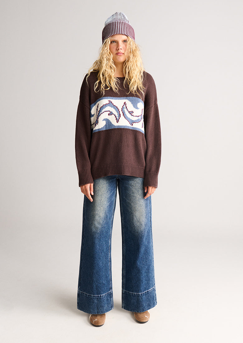 Think slow mornings, sea air and soft knits. The Hutchence Knit features a dreamy dolphin-wave panel and a lived-in, relaxed fit. With dropped shoulders and classic ribbed cuffs, it’s the perfect layer for those chilly shoreline walks and bonfire hangs.