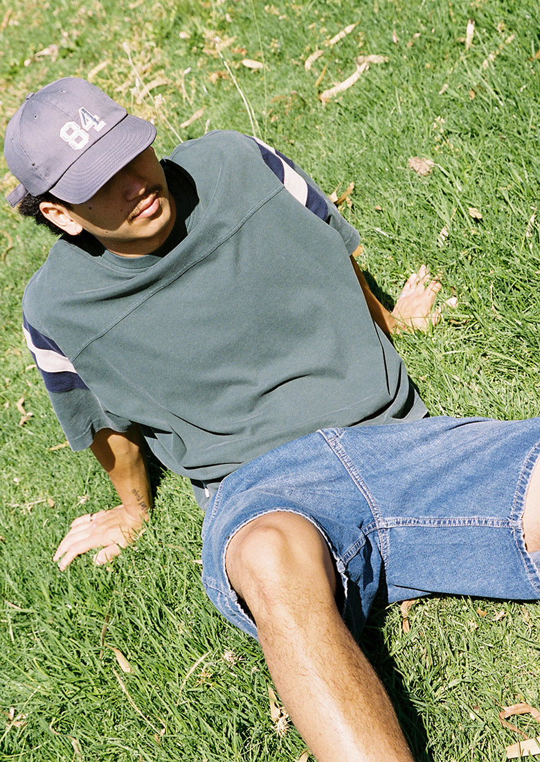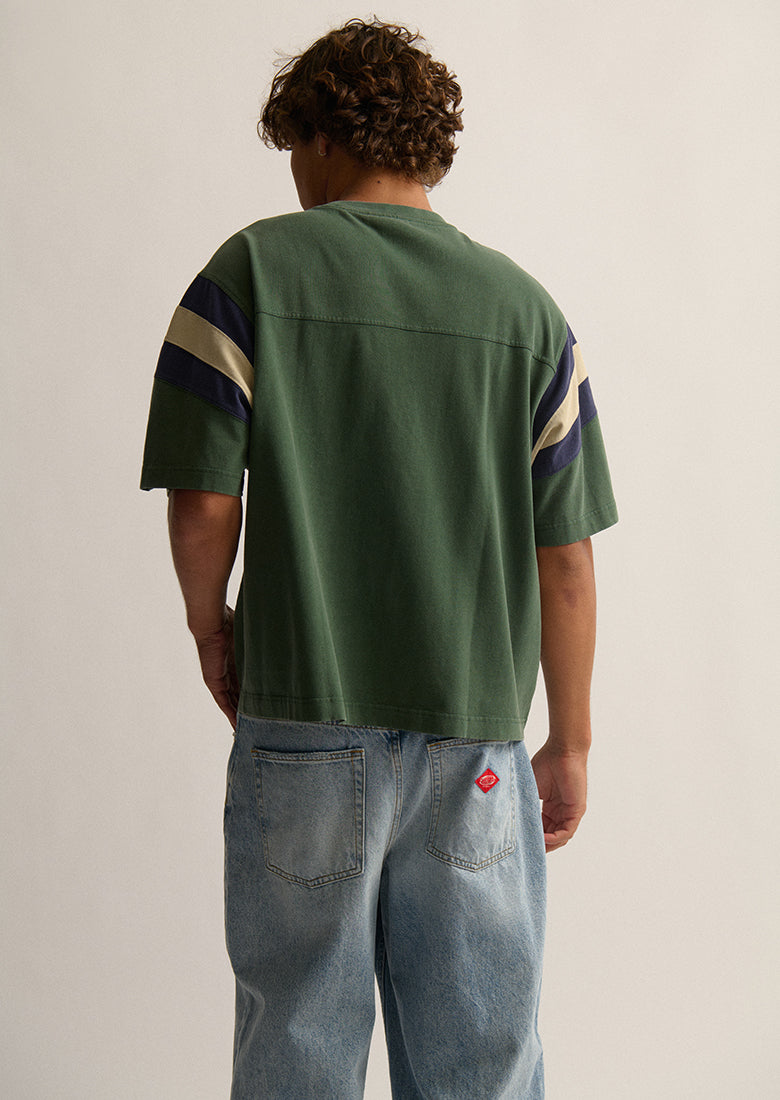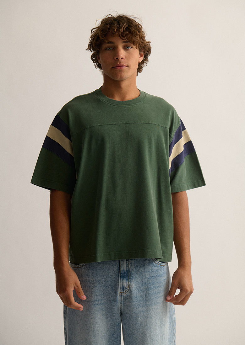 The Jock Tee brings vintage sporty vibes straight to your everyday rotation. Cut in a oversized, boxy fit with dropped shoulders for that effortlessly cool aesthetic, this 100% cotton essential features a classic ribbed neckline and elbow-length sleeves finished with contrast stripes for a retro touch. The ultimate grab-and-go tee for your laid-back days.