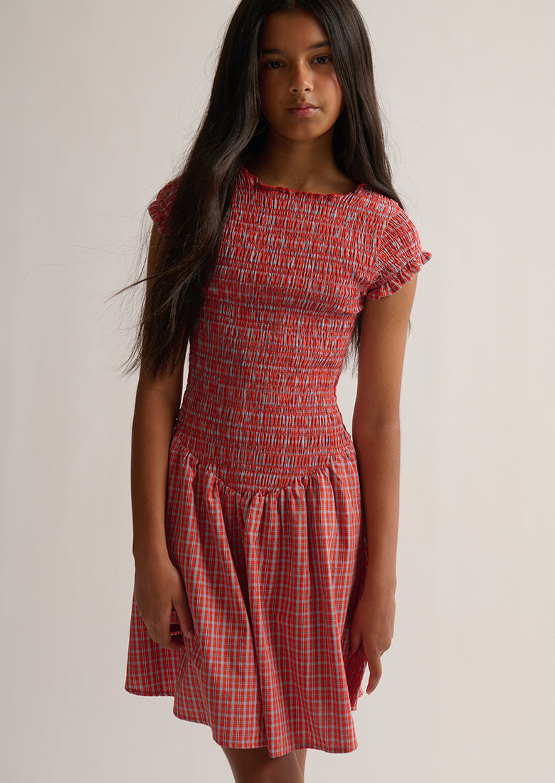 Say hello to the Kami Mini Dress! With its high neckline and cap sleeves featuring a lettuce frill, this mini is the perfect blend of sweet and chic. The fully shirred body gives it a super comfy, flattering fit, and the classic checkered pattern and drop waist keep it looking totally cute.