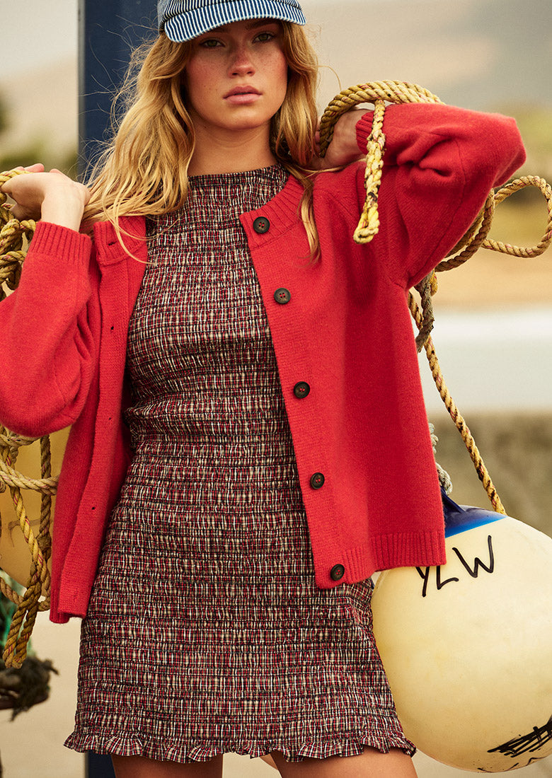Check out our Lane Mini Dress in Train Check! The high boat neckline paired with the flattering bodycon fit, ensures you'll exude confidence wherever you go. Made from soft 100% cotton with amazing stretch, it feels as good as it looks. And that little frill at the hem? It's the perfect finishing touch to this undeniably flattering mini.