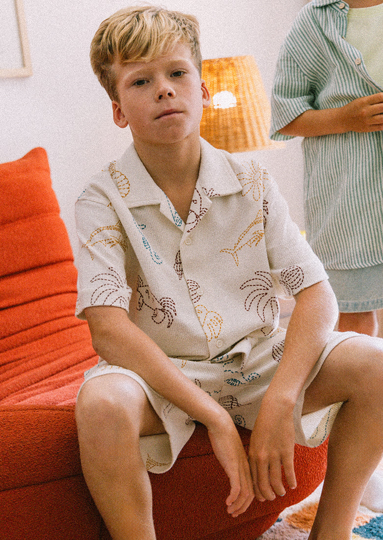 Bring on the good times with our Luca Short Sleeve Shirt! The short sleeves and regular fit keep him cool while he plays, and the stitching screen print design gives off major tropical vibes - this shirt is all about summer fun! Complete the look with our Luca Shorts for your next beach-side adventure.