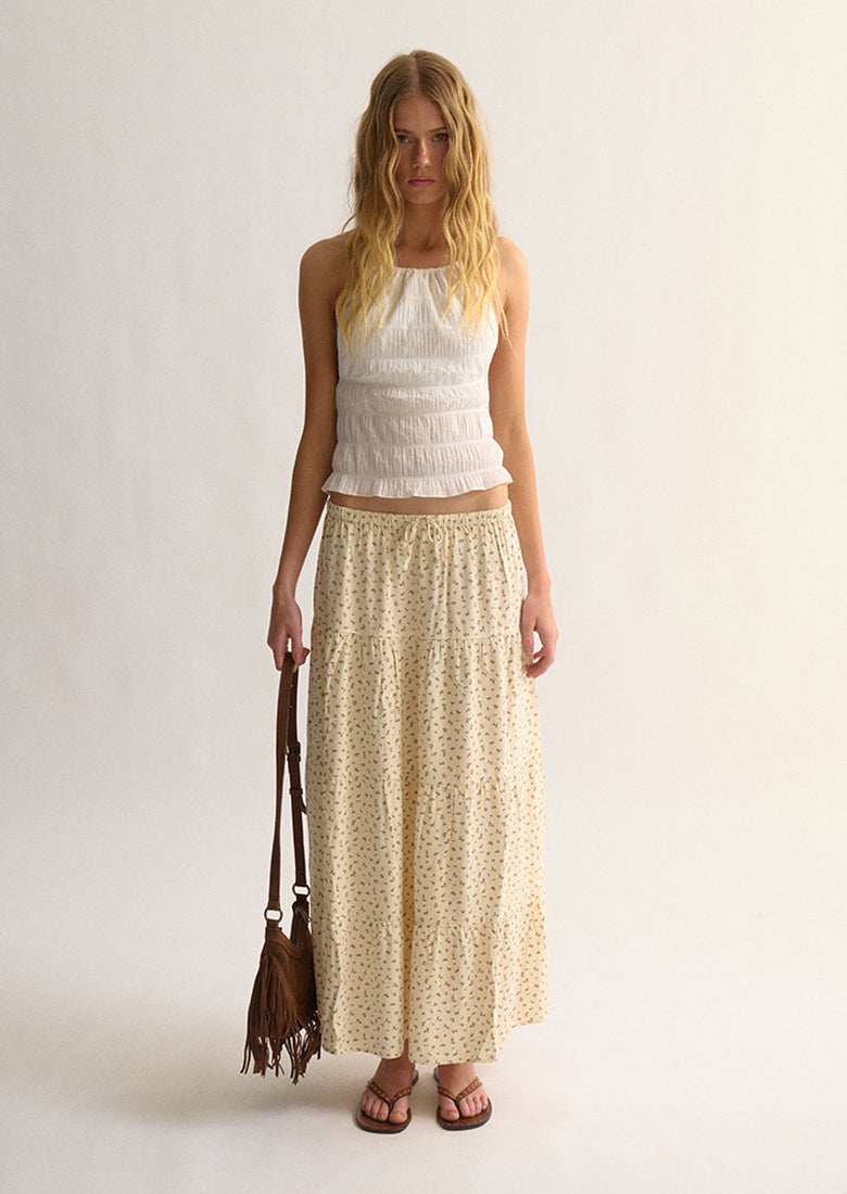 The Molly Maxi Skirt is your new sunny-day staple. Its tiered design and flowing maxi length bring effortless movement, while the elasticated waist with ties lets you wear it high or low for a perfect fit, ready for sunny garden strolls and relaxed afternoons in the sun.