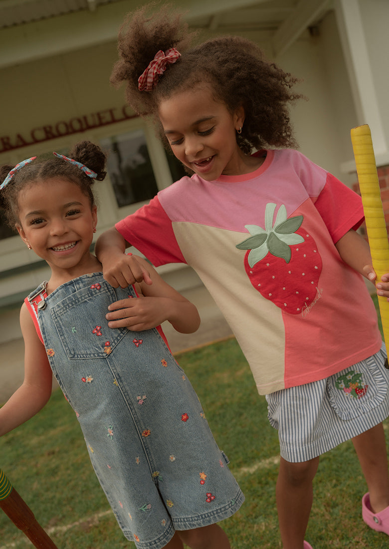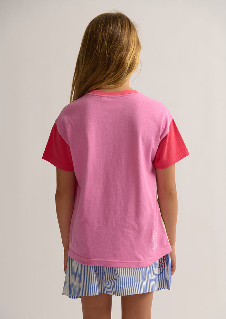 The Panel Thrift Tee features fun pastel colour block design and centre Butterfly in a boyfriend fit.