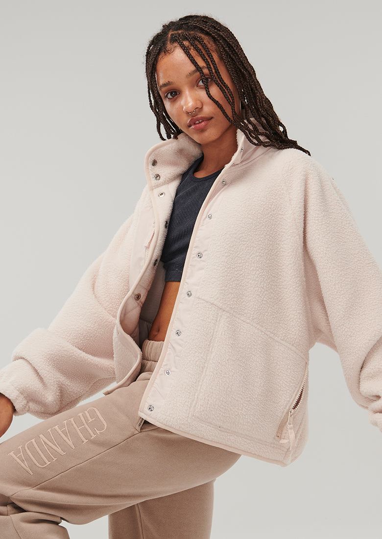 Be a boss babe in the Pinnacle Jacket. The perfect combo of a structure and comfort, in a boxy silhouette with three zip up up pocket detailing and constructed in a soft fabric. Button up front is ideal so you can wear it done up or down for all your outfits.