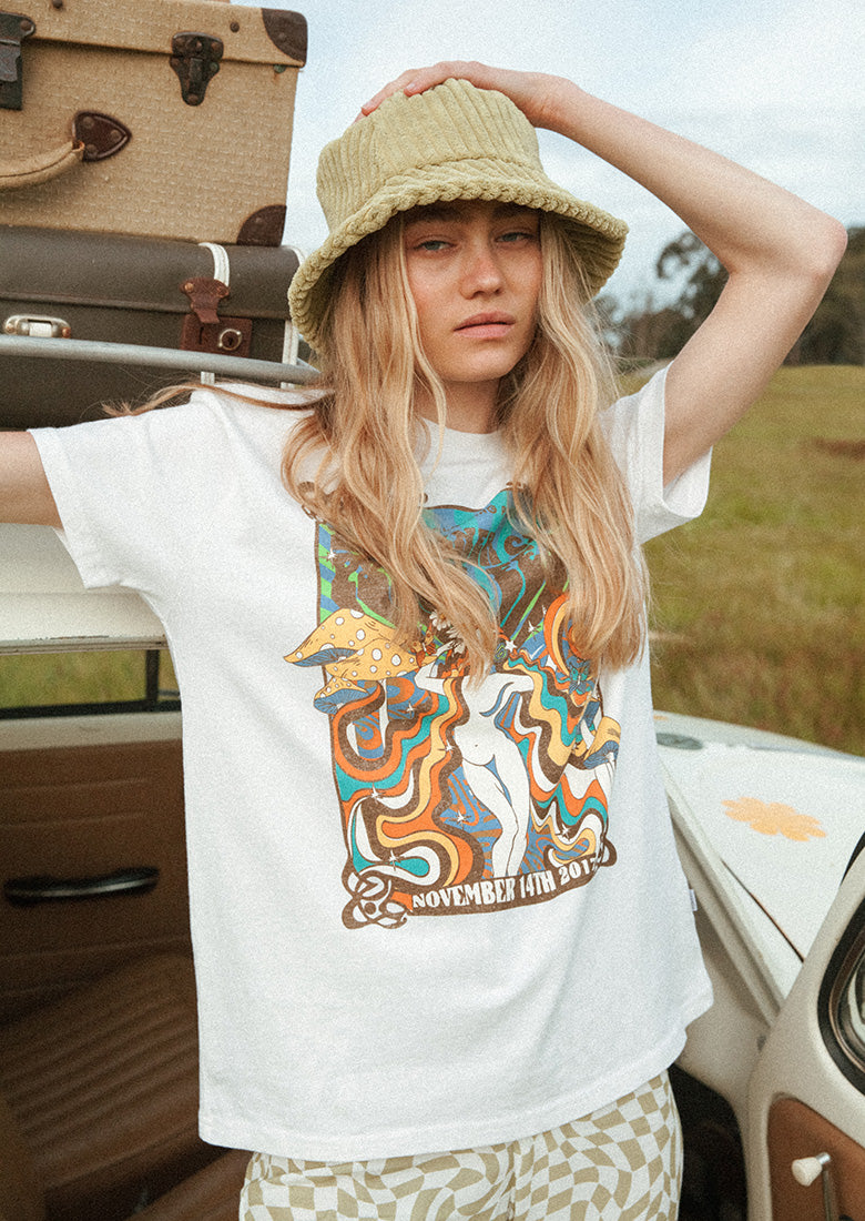 You’ll be sure to bring the cool girl vibes in out Band Tee! Tuck me into your fav jeans or try me with a skirt for a softer look. Fabric details: Colour: Off White