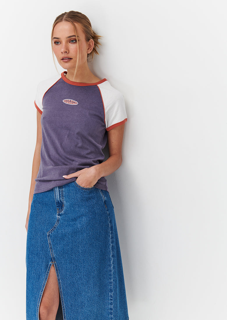 The Raglan Quinn Tee brings you back to good vibes with its vintage sport-inspired style. You can rely on its tight fit, short sleeves, high crew neckline, and eye-catching graphic chest design to be your new everyday go-to! Let the fun begin!