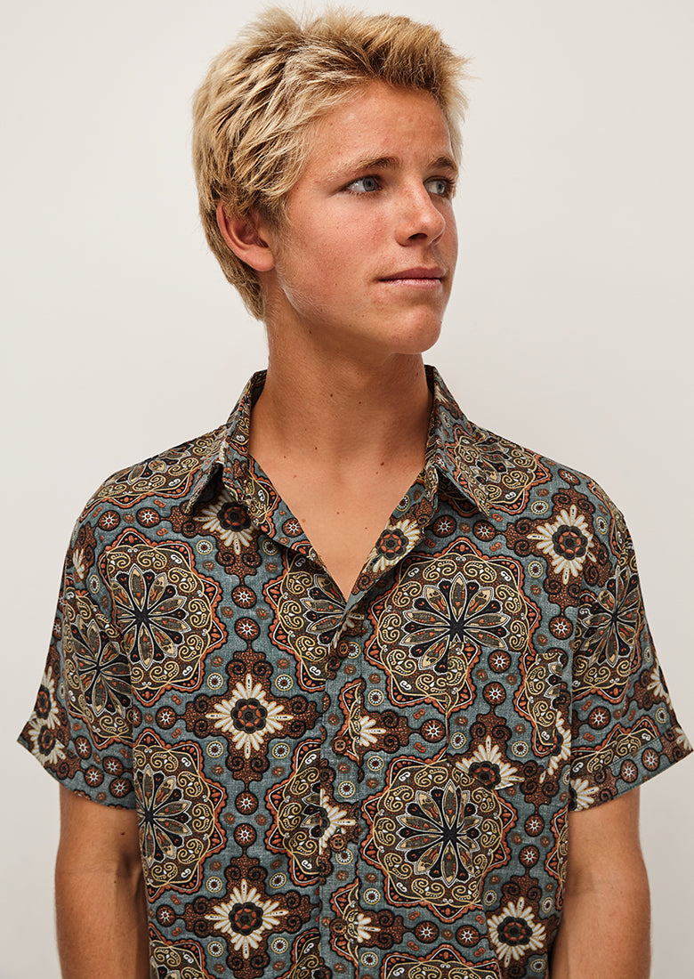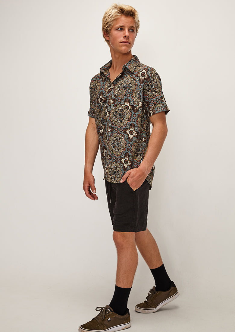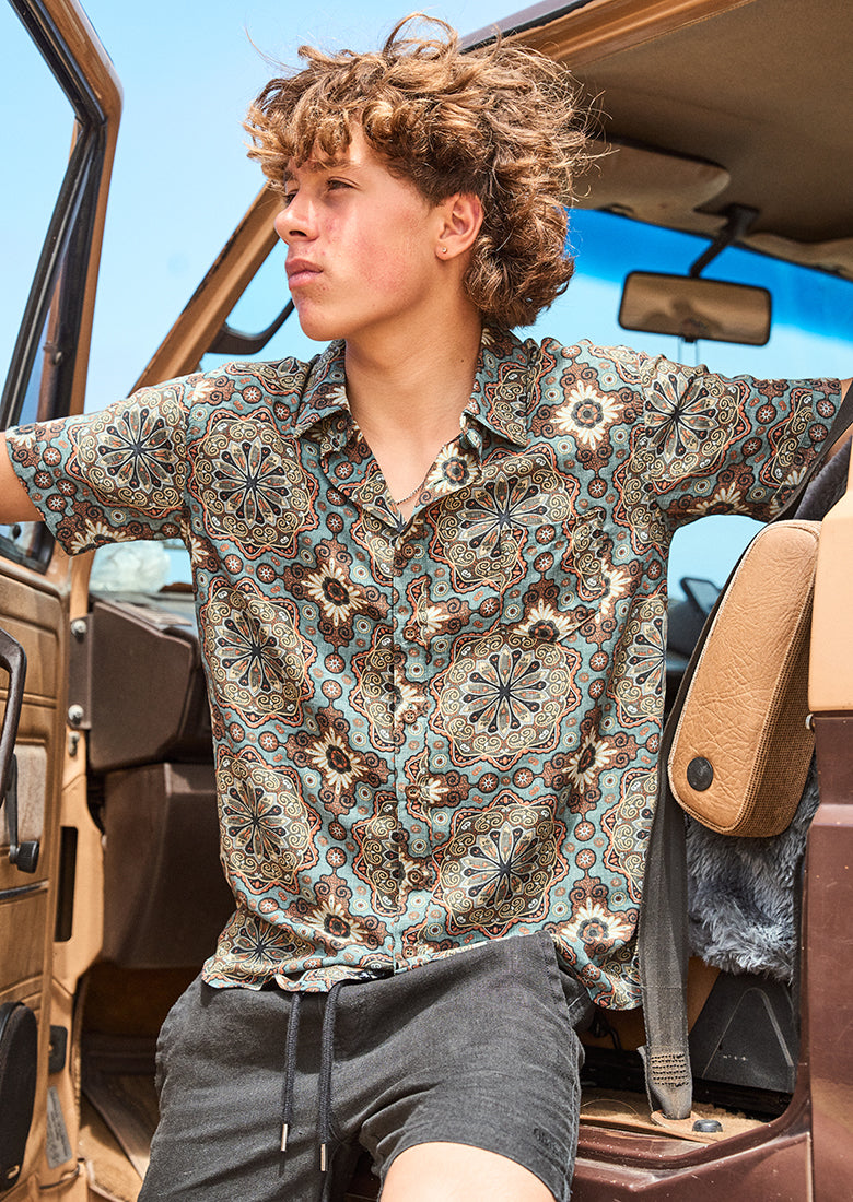 The Rayon Shirt is the perfect lightweight shirt for an effortlessly cool look. Classic button down style with collared neck and chest pocket, relaxed fit so it's perfect for a beach bbq!