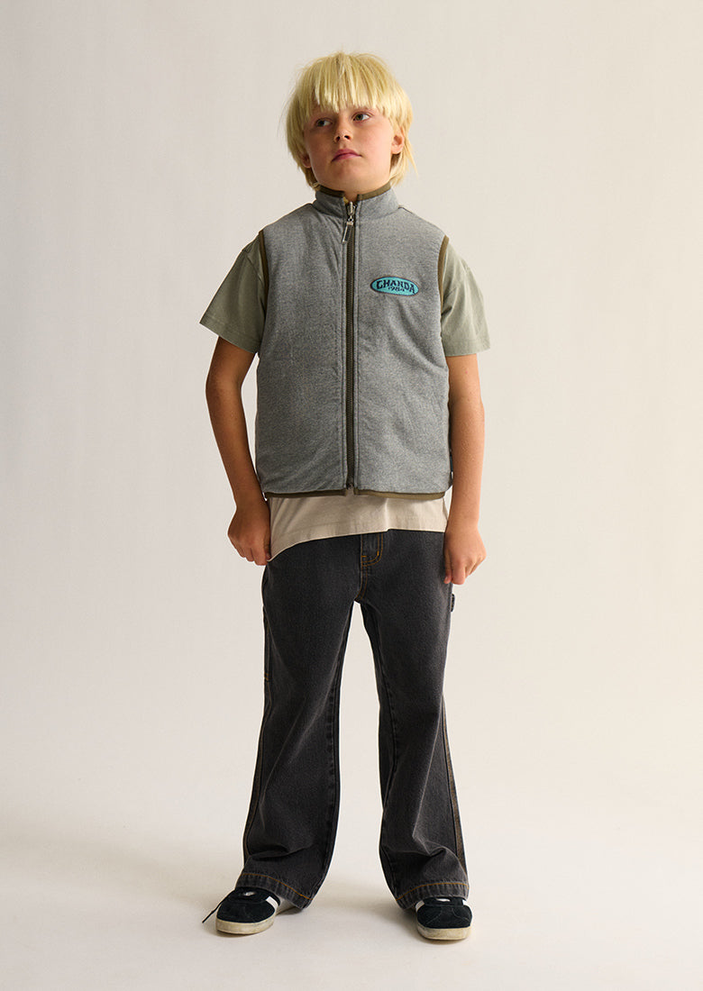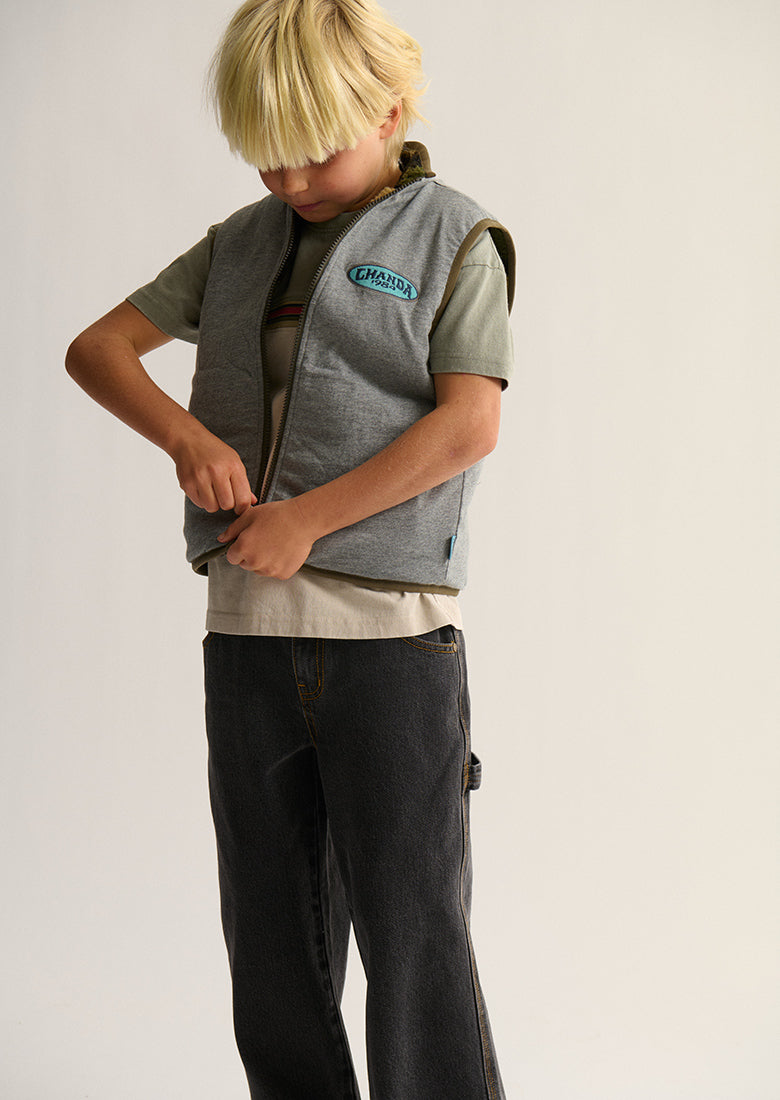 Cosy up and switch it up! Our Reversible Sherpa Vest is the perfect winter layer for any adventure. Choose the fuzzy faux sherpa side for maximum snuggle power, or opt for the timeless, classic grey on the reverse. Packed with features like a cool chest embroidery patch, useful chest and side pockets for all his finds, and an easy zip-up front.