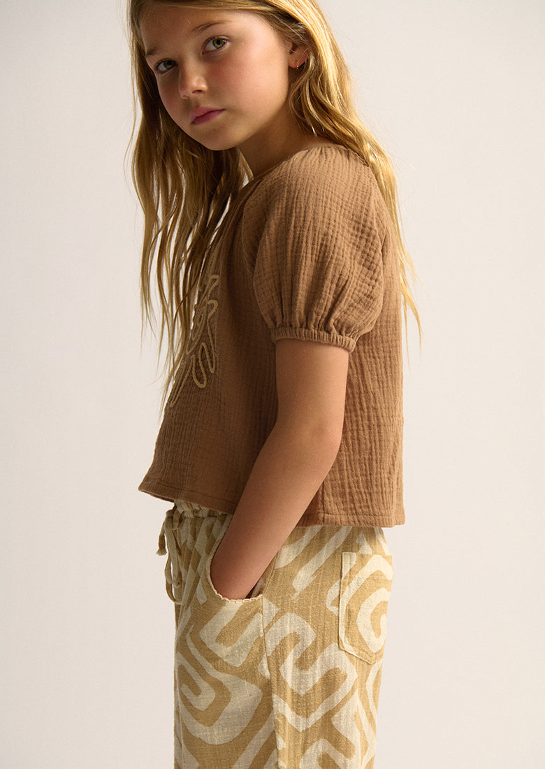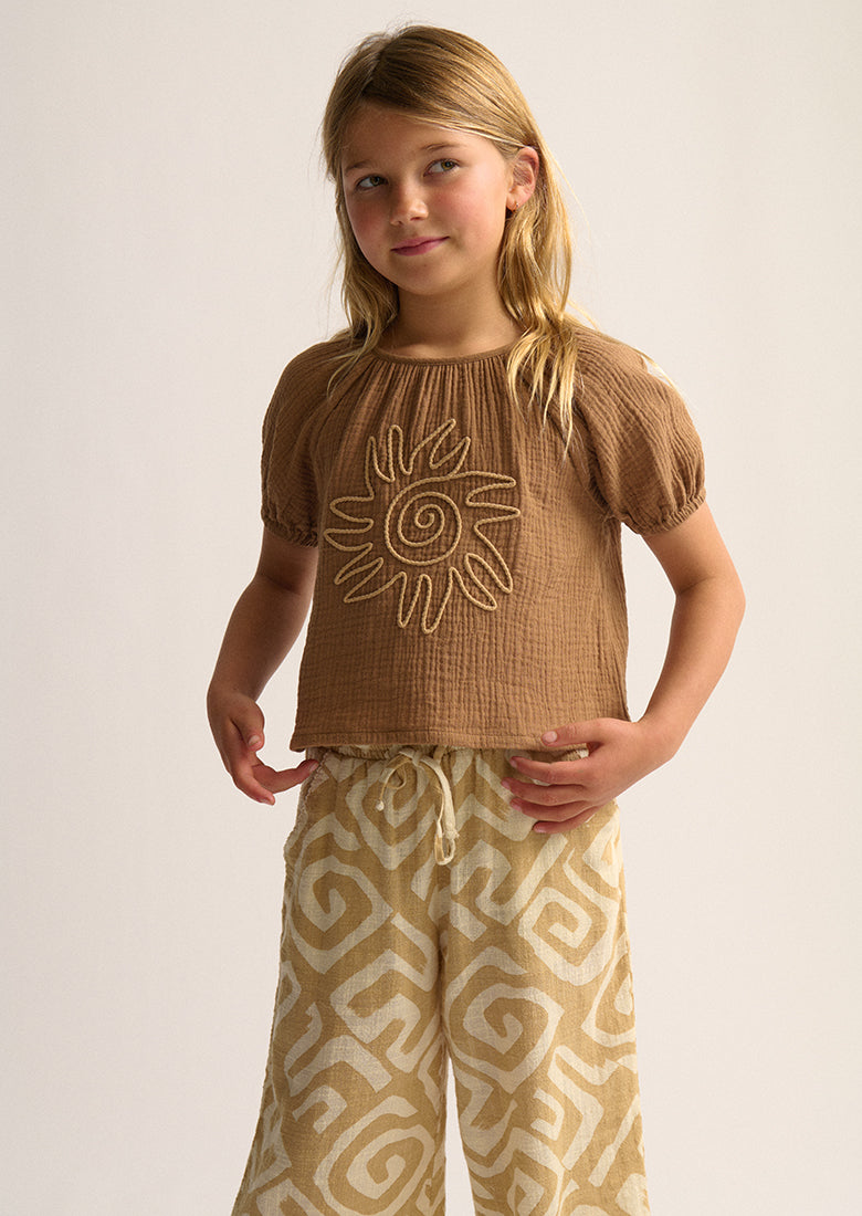 Ready for fun in the sun? The Shell Top is built for park days, beach trips, and everything in between! Made from soft 100% cotton, it feaures asweet high neckline, puffed cap sleeves, and a relaxed hem, keeping things easy-breezy on sunny afternoons.