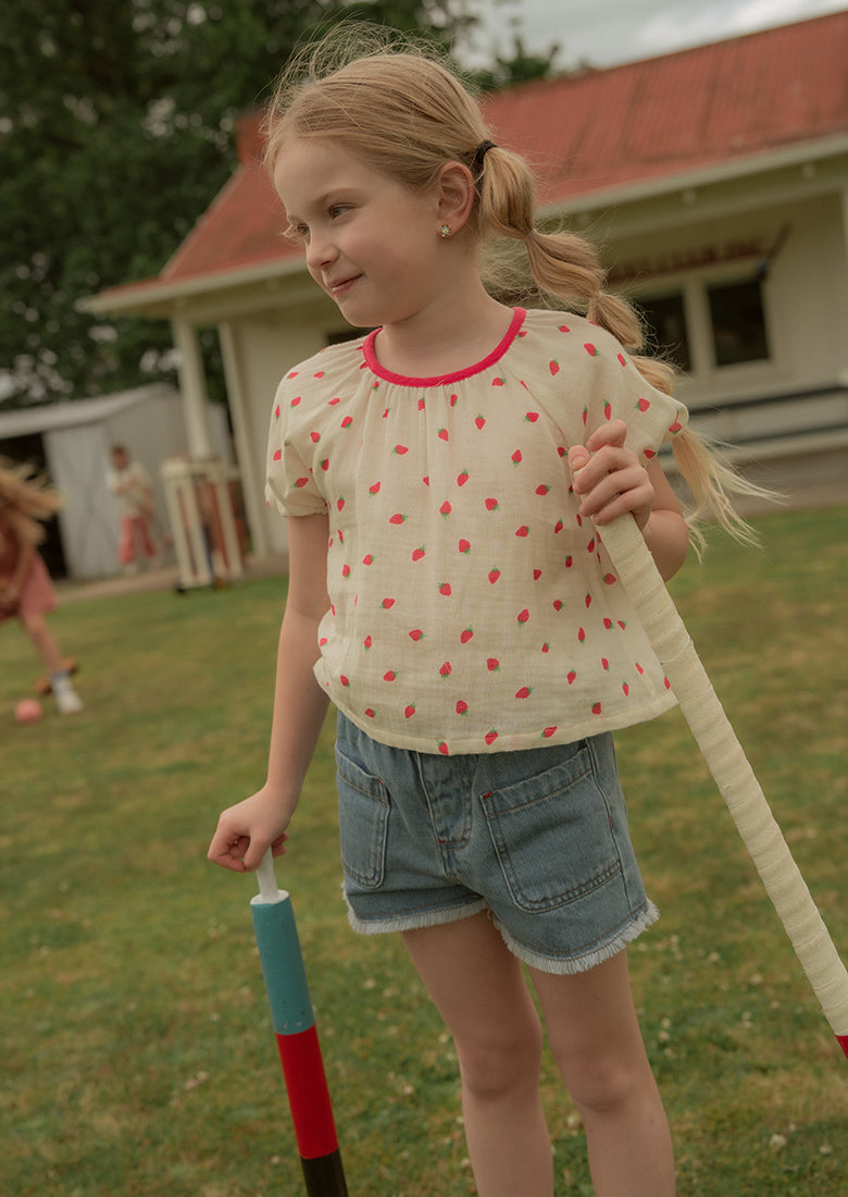 Ready for fun in the sun? The Shell Top is built for park days, beach trips, and everything in between! Made from soft 100% cotton, it feaures asweet high neckline, puffed cap sleeves, and a relaxed hem, keeping things easy-breezy on sunny afternoons.