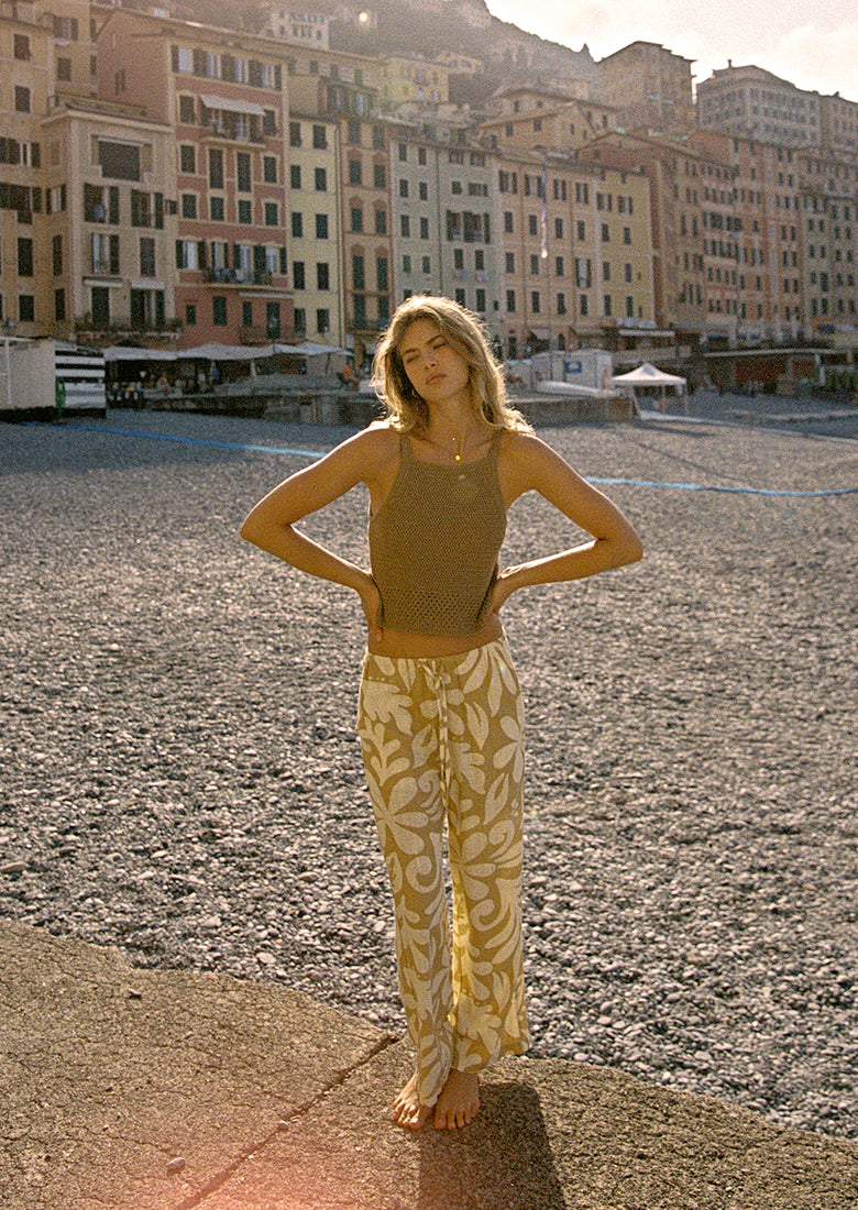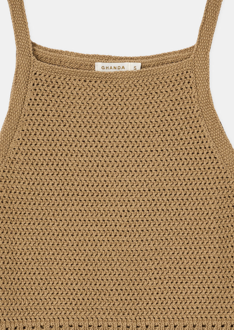 The Sienna Top is your summer companion! This knitted, cami style, crop top is just what you need to turn heads at the beach. Its square neckline gives it a beachy and summery touch in Tawny.