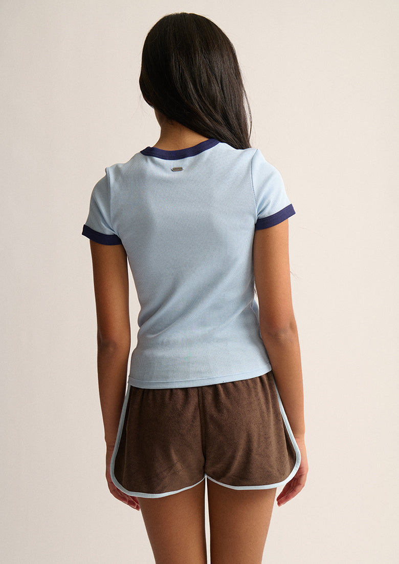 Your new favorite tee just dropped. The Snapper Tee is a ribbed ringer shirt with a slim fit and high crew neck. The contrast ribbing on the sleeves and neck gives it a cool, retro edge - making it the perfect go-to for a chill, coastal look.
