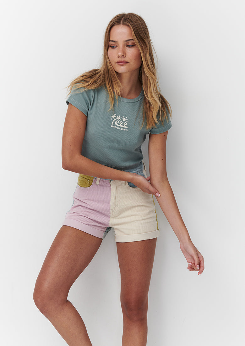 Your new fave crop is here! Our Spice Tee in White is the coolest addition to your euro summer wardrobe. Featuring a high crew neckline, tight cropped fit and Milos landscape logo on the chest, you'll never want to take this tee off!