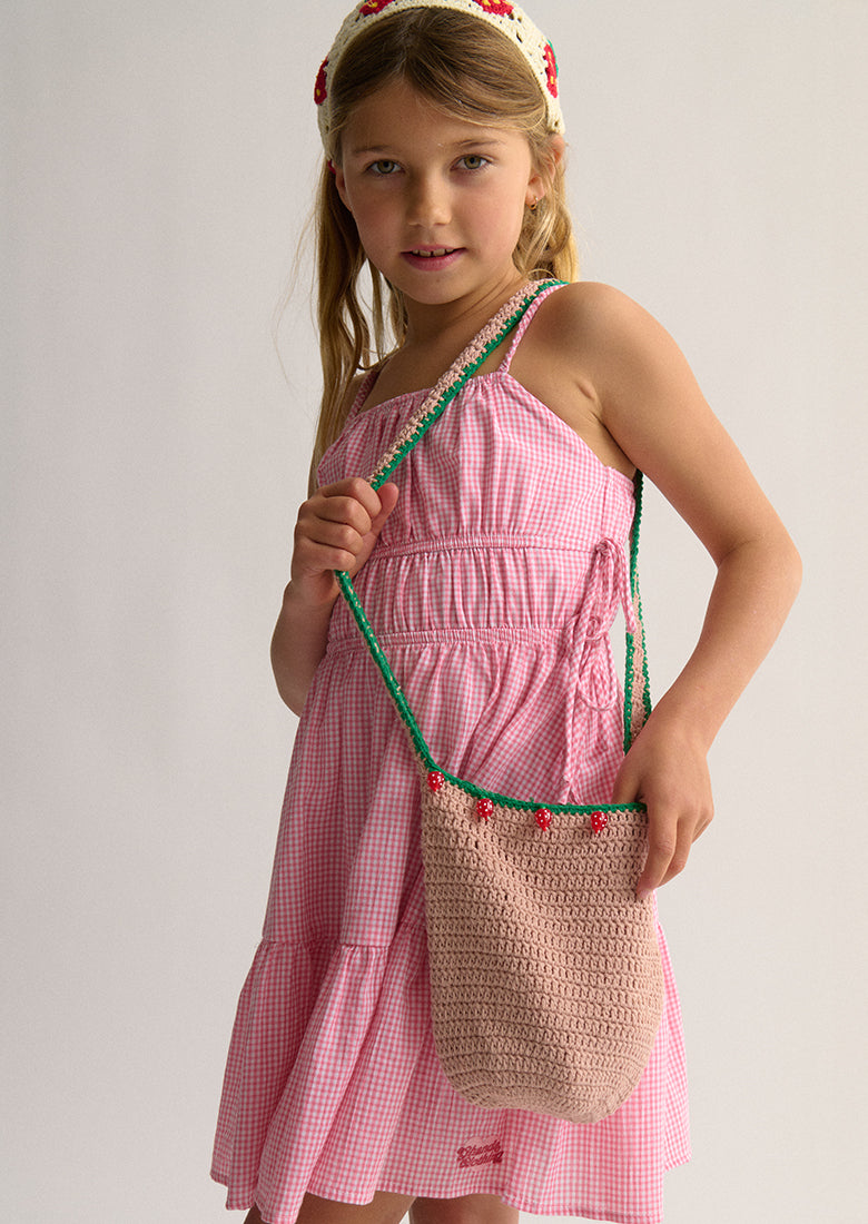 Sweeten every outfit with the Strawberry Sunday Bag! With its crochet-knit design, contrast stitching, and hanging strawberry charms, it's the perfect shoulder bag for playdates, parties, and everyday adventures.