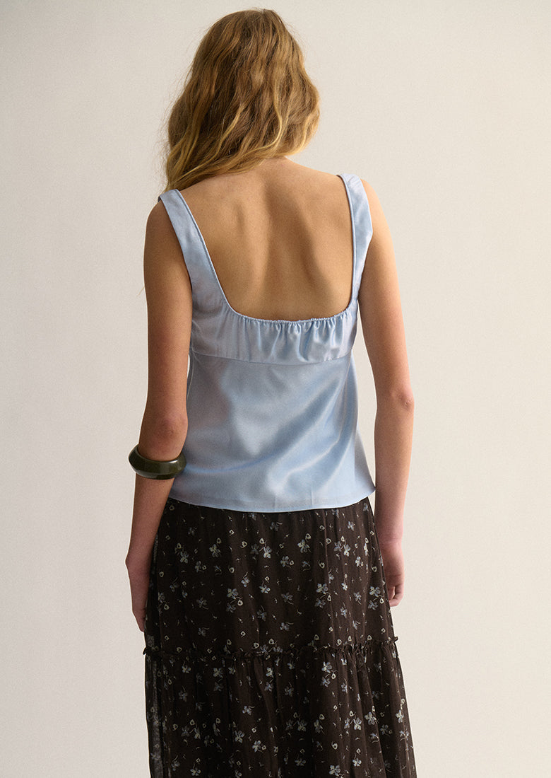 Elevate your look instantly with the Studio Top. Made from a soft, silky fabric, it drapes beautifully with a flowy, relaxed hem. The top features a wide scooped neckline with subtle gathered fabric detail and thick fixed straps for an elegant, comfortable fit, all finished with a hidden side zipper for a smooth, seamless look.