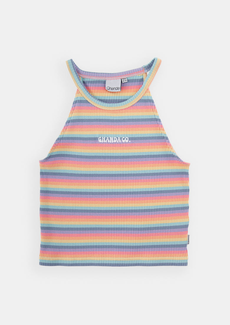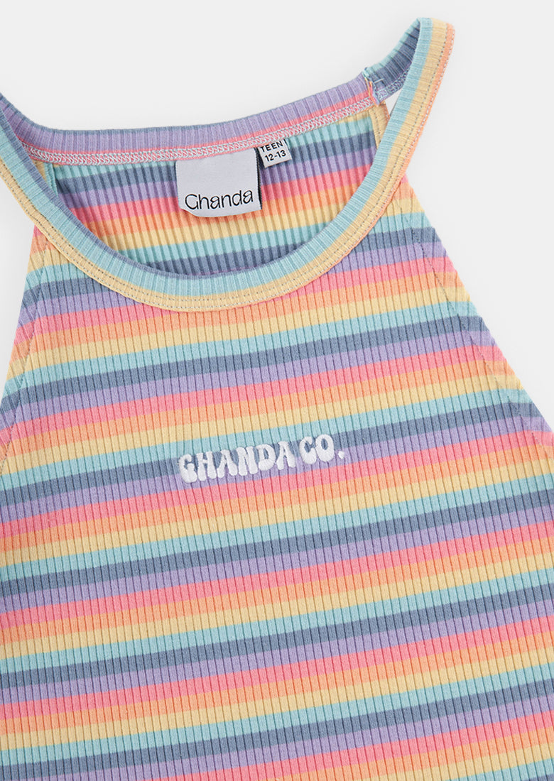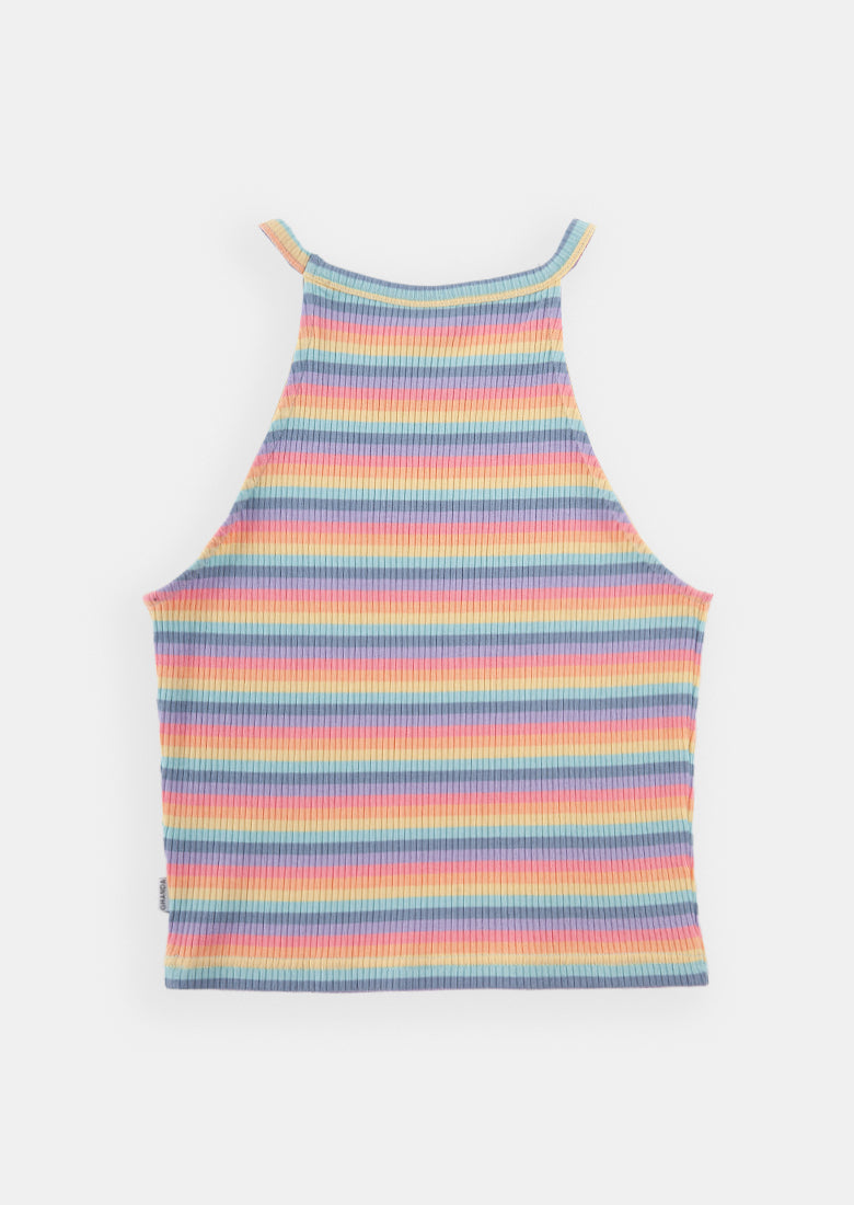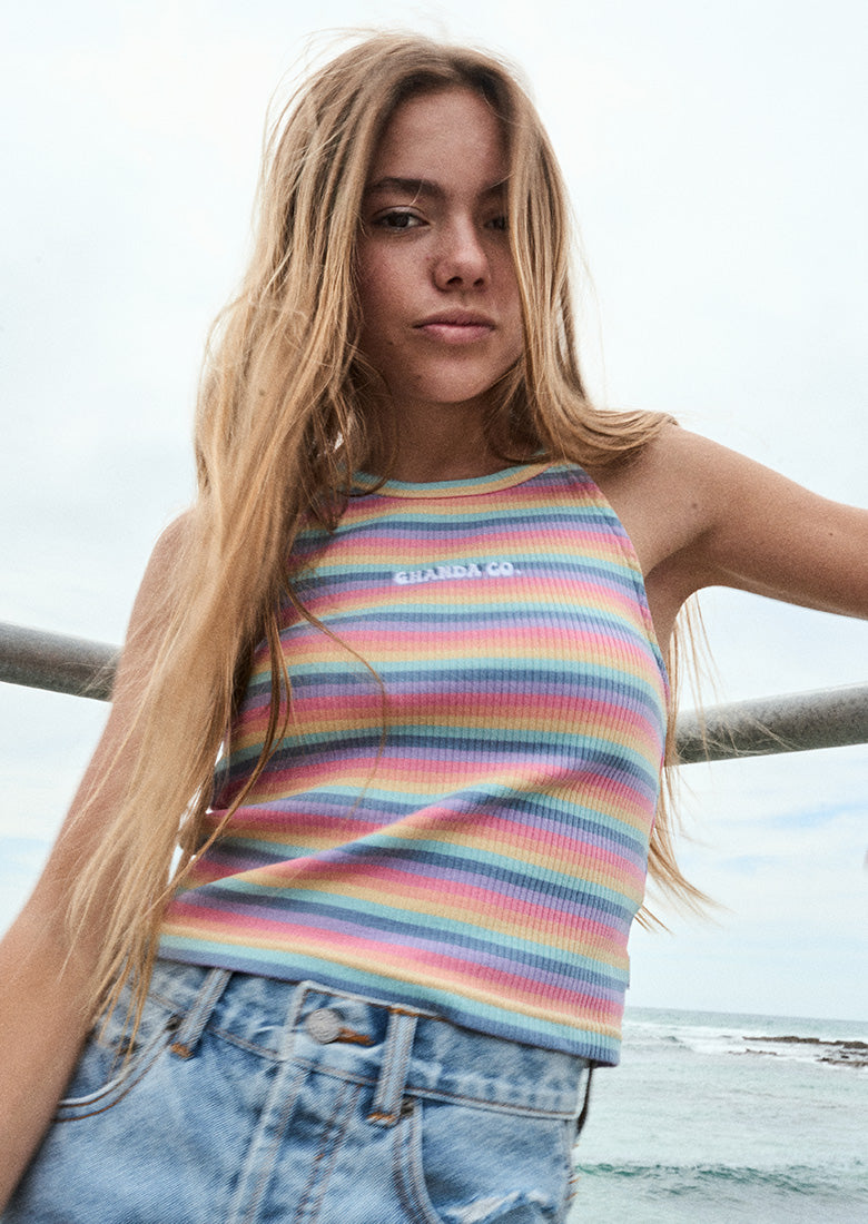 A cute halter neck tank for the summer! Our Sully Tank in Pastel Stripe features our signature puff logo print, vibrant horizontal stripes and a cropped fit. Pair this with your fave denim shorts and a pair of sneakers for an outfit you can run around in!