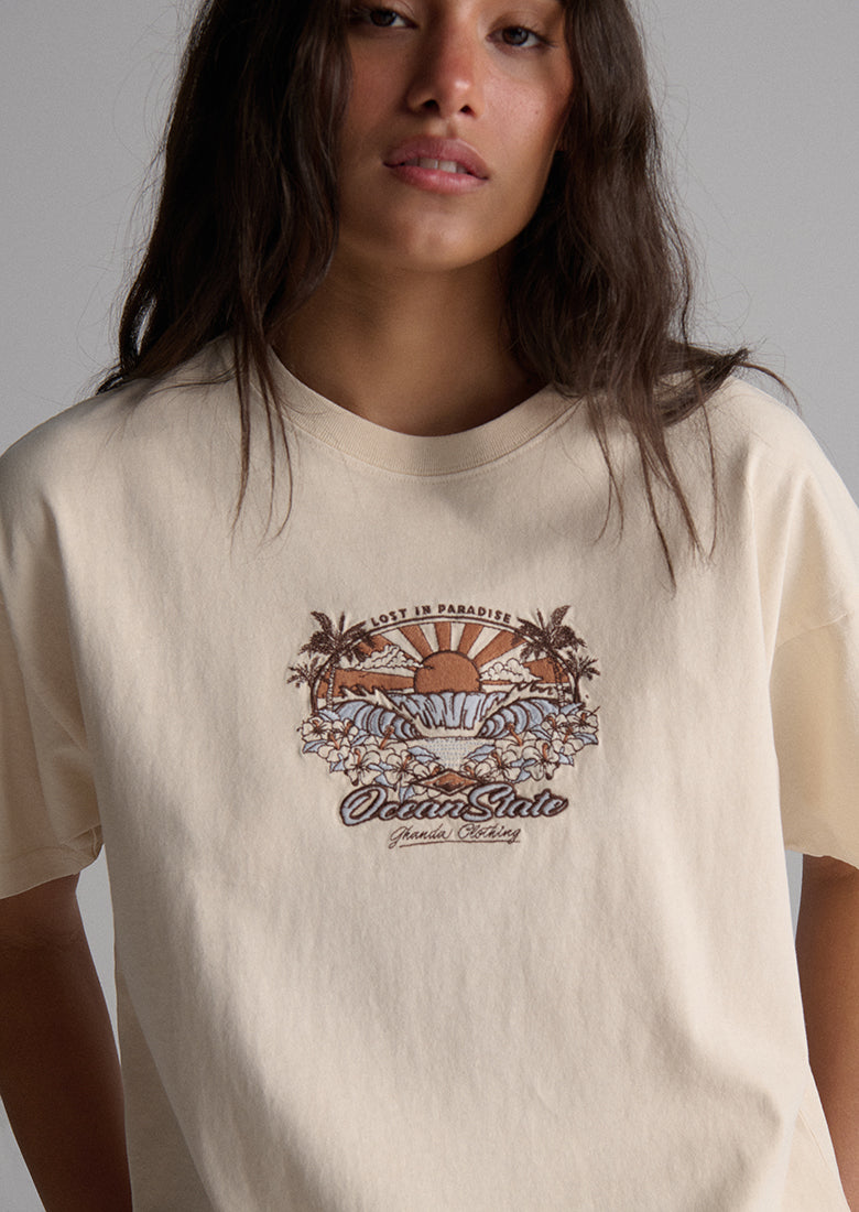 Level up your everyday look with the Throwback Tee. Designed with an oversized fit, boxy sleeves, and a full-length cut, it delivers relaxed comfort with effortless style. Finished with an embroidery detail and ribbed crew neckline, this tee is an instant staple you’ll reach for on repeat.
