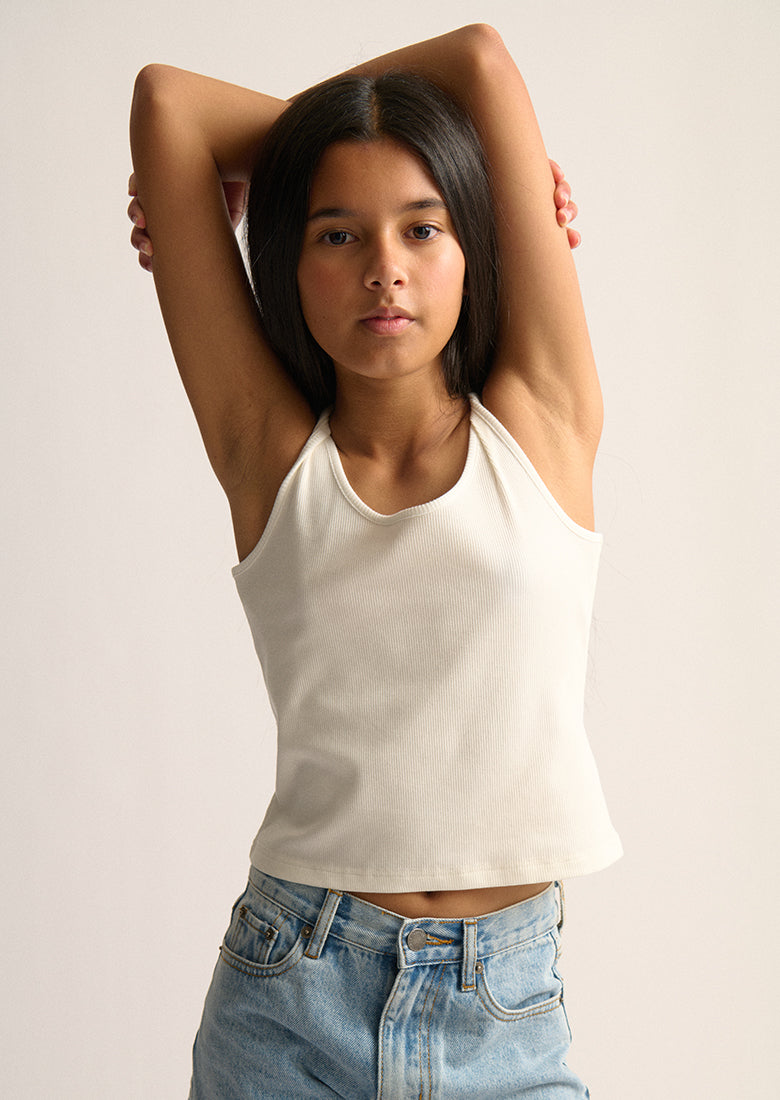 Elevate your everyday look with the Twist Singlet. Crafted from a super soft, ribbed cotton blend, this top features a classic scoop neckline and a modern cropped fit. The unique twisted straps give it a chic, elevated feel, making it the perfect piece for adding style to any outfit.