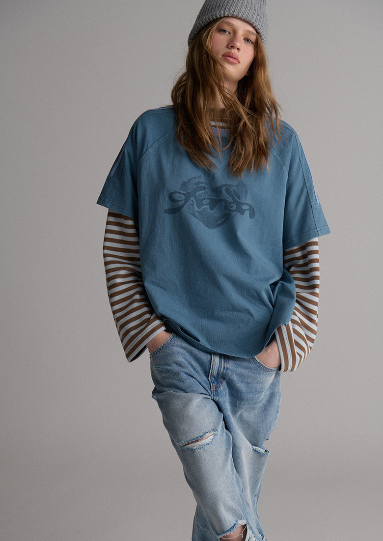 Get that effortless, vintage look with the Varsity Tee. This oversized, boxy t-shirt feels as good as it looks, with the raglan design, crew neckline, and contrast panelling and binding on the sleeves create a retro athletic aesthetic. With bold screen prints on the front and back, this tee is the ultimate go-to for a comfortable and stylish nod to old-school cool.