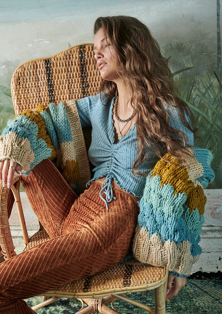 - You?ll be wearing this long sleeve crop everyday! The Winona Long Sleeve is constructed in super soft ribbed cotton featuring ruched details finished with the cutest lettuce hem trim.